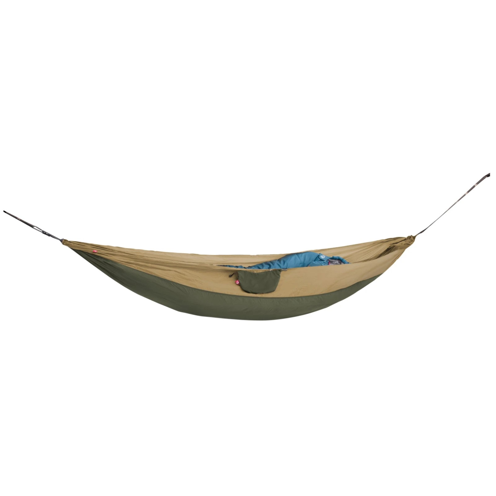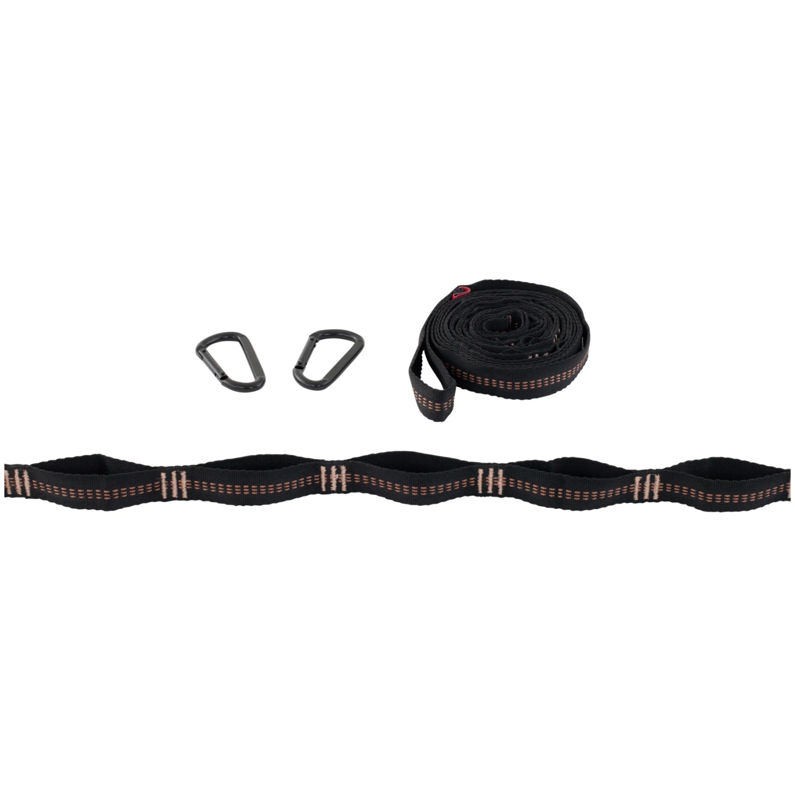 Im Lieferumfang sind eine Hängematte, 2x Daisy Chain, 2x Karabiner und eine Transporttasche enthalten.