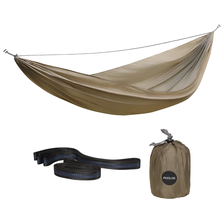 Hängematte Rockland Die One ist ein toller Begleiter für jeden Naturliebhaber, der auf der Suche nach einem bequemen Platz zum Ausruhen auf Reisen ist. Es ist die ideale Wahl für Wanderer, Camper oder alle, die Momente der Ruhe und Stille in der Natur genießen möchten. Diese Hängematte ist für einen Benutzer konzipiert und bietet die perfekte Kombination aus Leichtigkeit, Haltbarkeit und Einfachheit. Die Verwendung hochwertiger Materialien gewährleistet eine hohe Belastbarkeit und lange Lebensdauer, egal ob Sie es im Garten, im Wald oder am Strand verwenden. Es lässt sich einfach und schnell zwischen Bäumen oder anderen Stützen aufhängen und nimmt im zusammengefalteten Zustand nur minimalen Platz in Ihrem Rucksack ein.