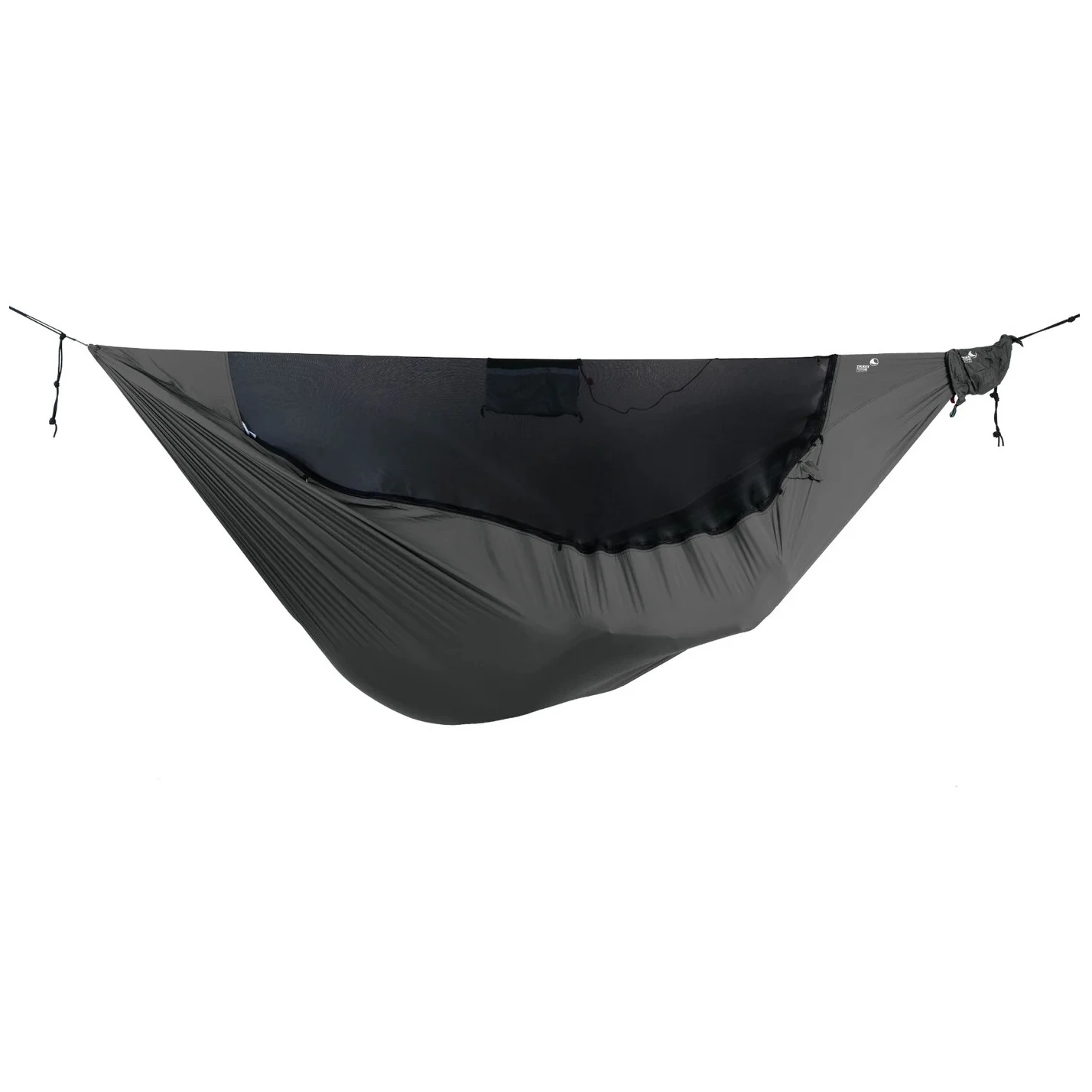 Die Hängematte Ticket to the Moon, die von Ultraleicht-Enthusiasten und Abenteurern geschätzt wird, besteht aus gewelltem Nylon Segeltuch. Es ist außerdem mit einem einziehbaren und abnehmbaren Moskitonetz mit Mikromaschen (200 Löcher/cm²) ausgestattet, das Sie vor Mücken und anderen fliegenden oder kriechenden Insekten schützt. Diese funktionale Hängematte mit den Abmessungen 310 x 140 cm und einer Tragfähigkeit von bis zu 100 kg lässt sich dank der integrierten und verstellbaren Leiste ( Ridgeline ) ganz einfach installieren und sorgt so für eine bequeme Position. Außerdem verfügt es über Speicherplatz für Ihr Netzwerk und Ihre persönlichen Gegenstände. Die Lightest Pro Hängematte lässt sich in einer integrierten bananenförmigen Tasche verstauen.