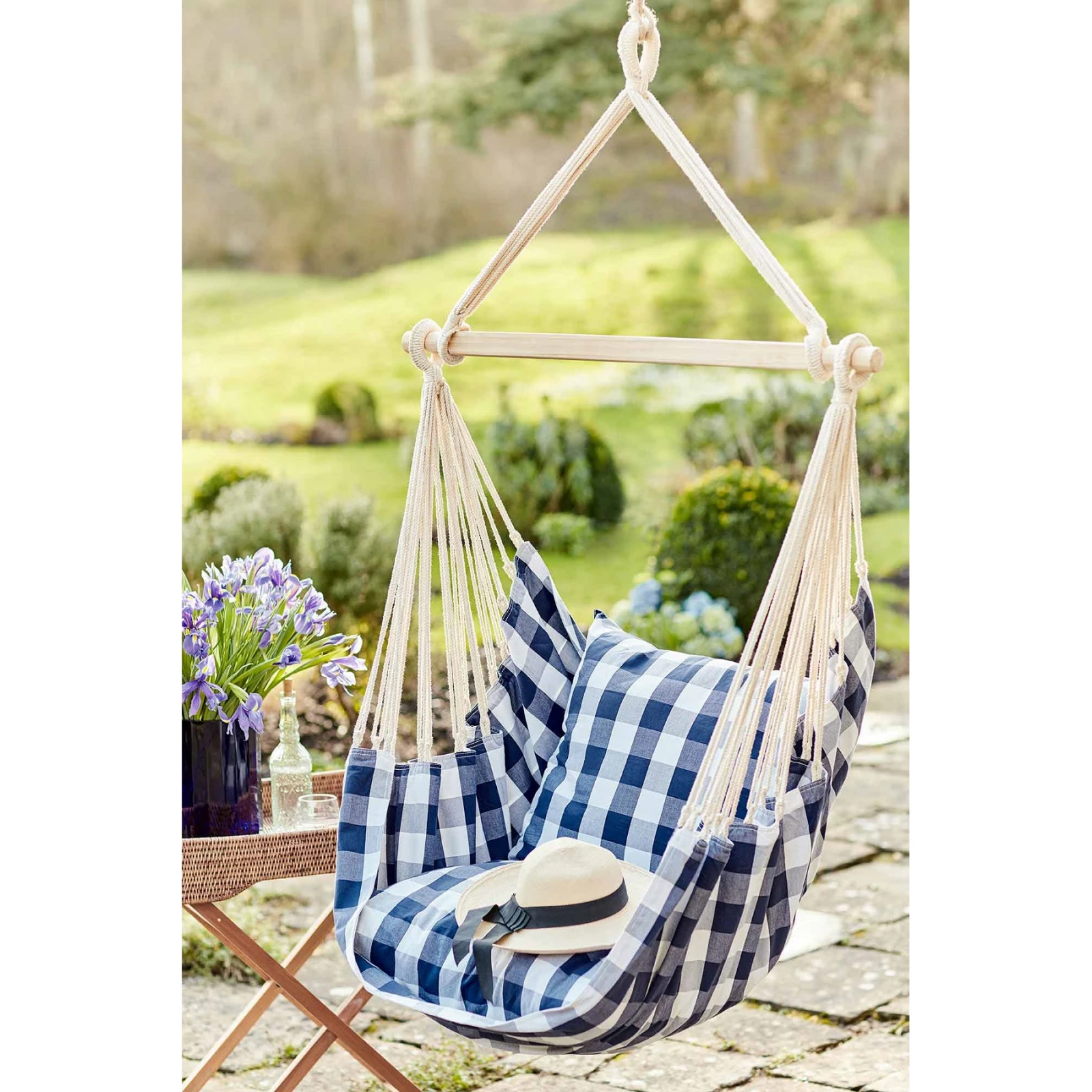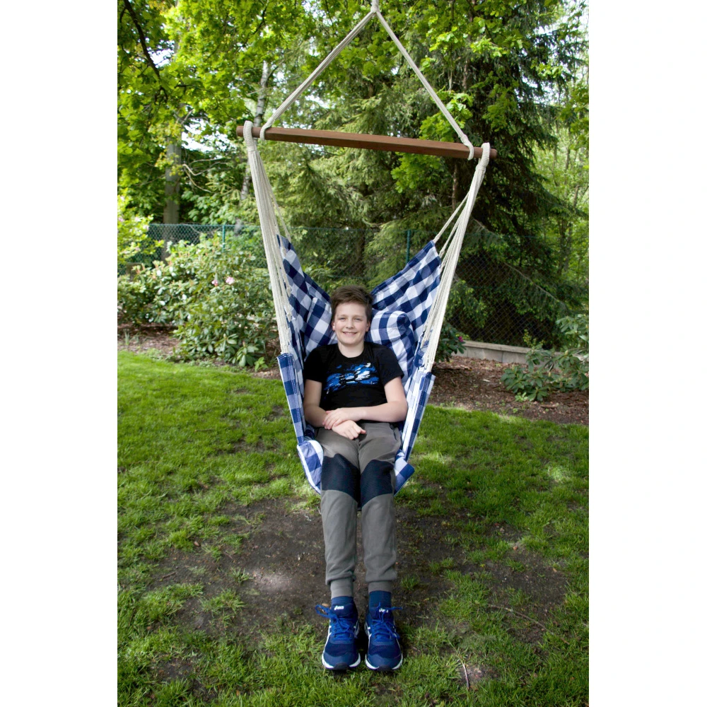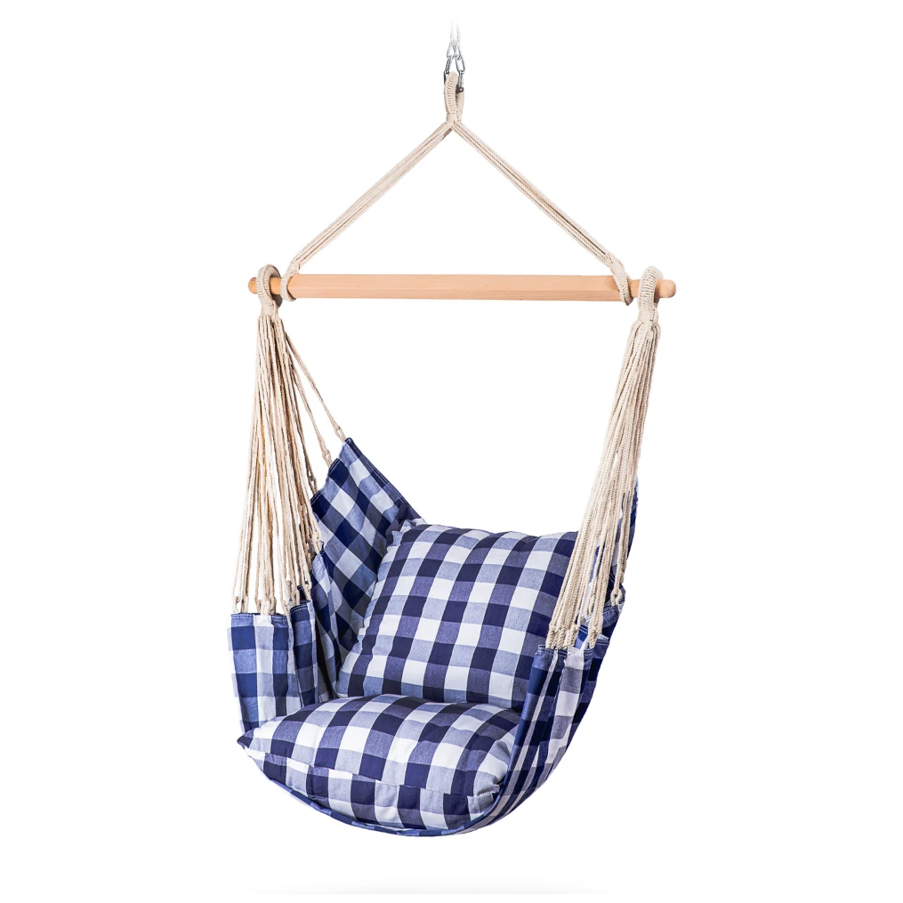 Der originale Hängesessel Hamaka-Kissen ist eine tolle Ergänzung für Ihr Haus und Ihren Garten. Die Kissen, aus denen Sitz und Rückenlehne bestehen, sind sehr bequem und Sie brauchen nichts weiter, um einfach bequem zu sitzen und zu entspannen. Eine Holzstange gibt dem Stuhl seine Form.