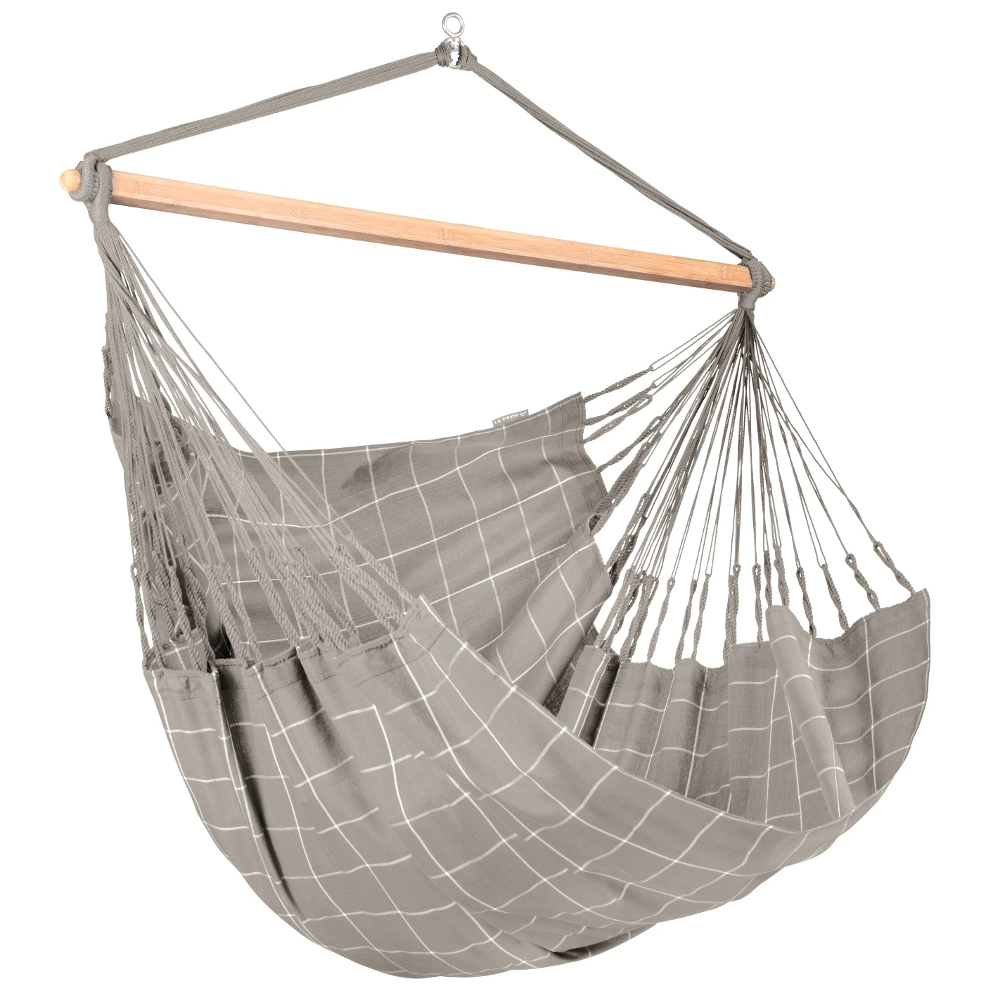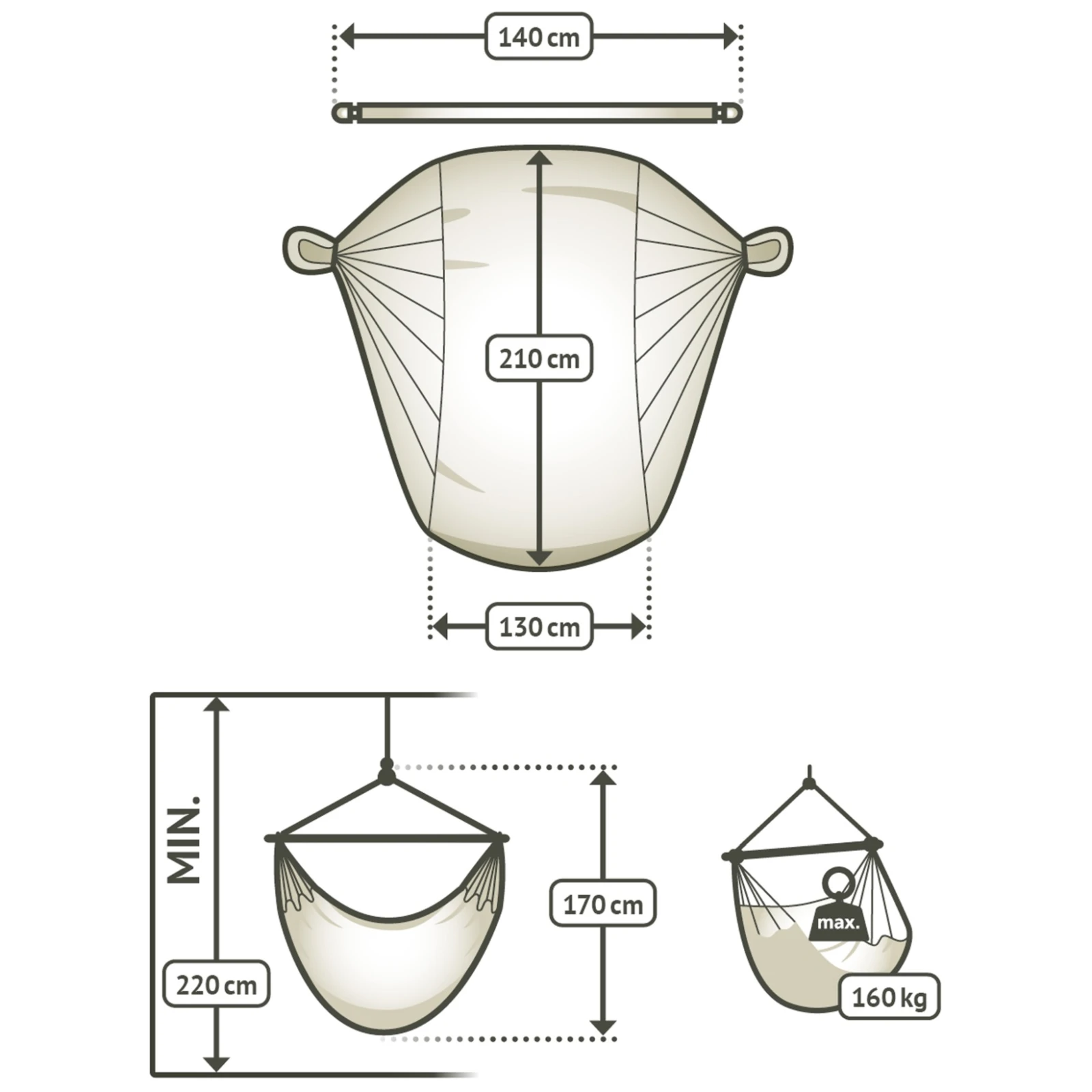 Das Domingo Kingsize ist 210 cm lang, sodass Sie darin bequem ruhen, lesen und entspannen können – sitzend, liegend, allein oder zu zweit. Wenn Sie einen Hängesessel suchen, der kompakter ist und weniger Platz zum Aufhängen benötigt, empfehlen wir den Domingo Comfort.
