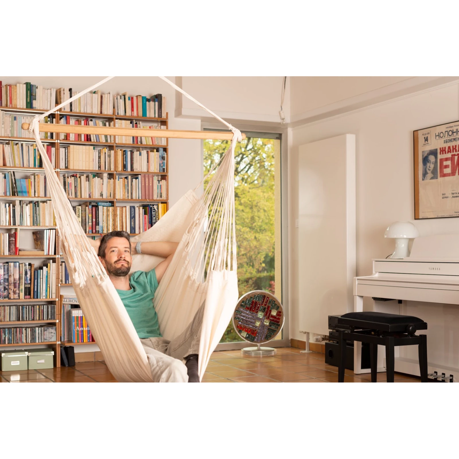 Seine großzügigen Abmessungen (180 cm Länge) laden zum entspannten Sitzen und Liegen ein. Im Gegensatz zur Größe Kingsize ist es jedoch kompakter und benötigt weniger Platz zum Aufhängen.