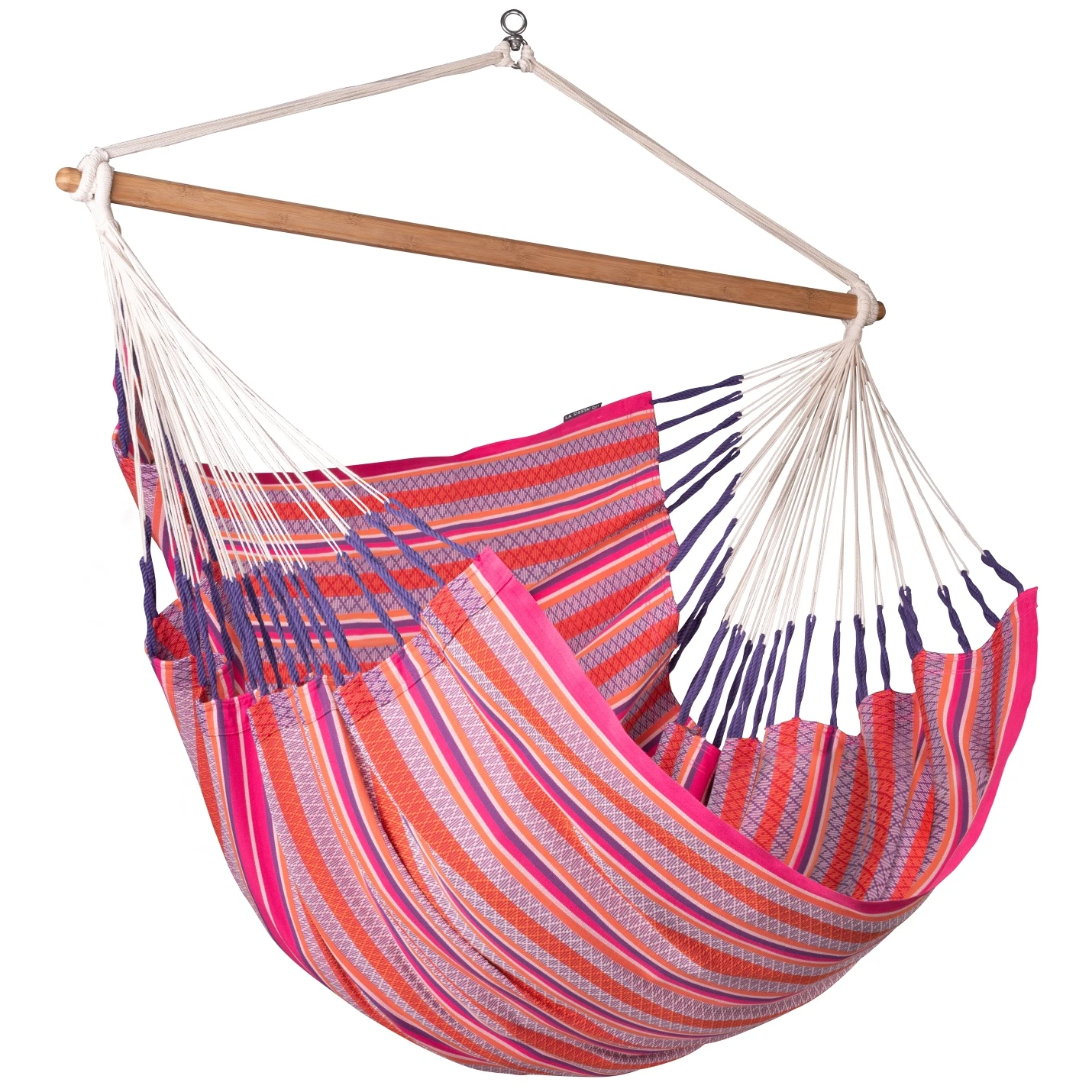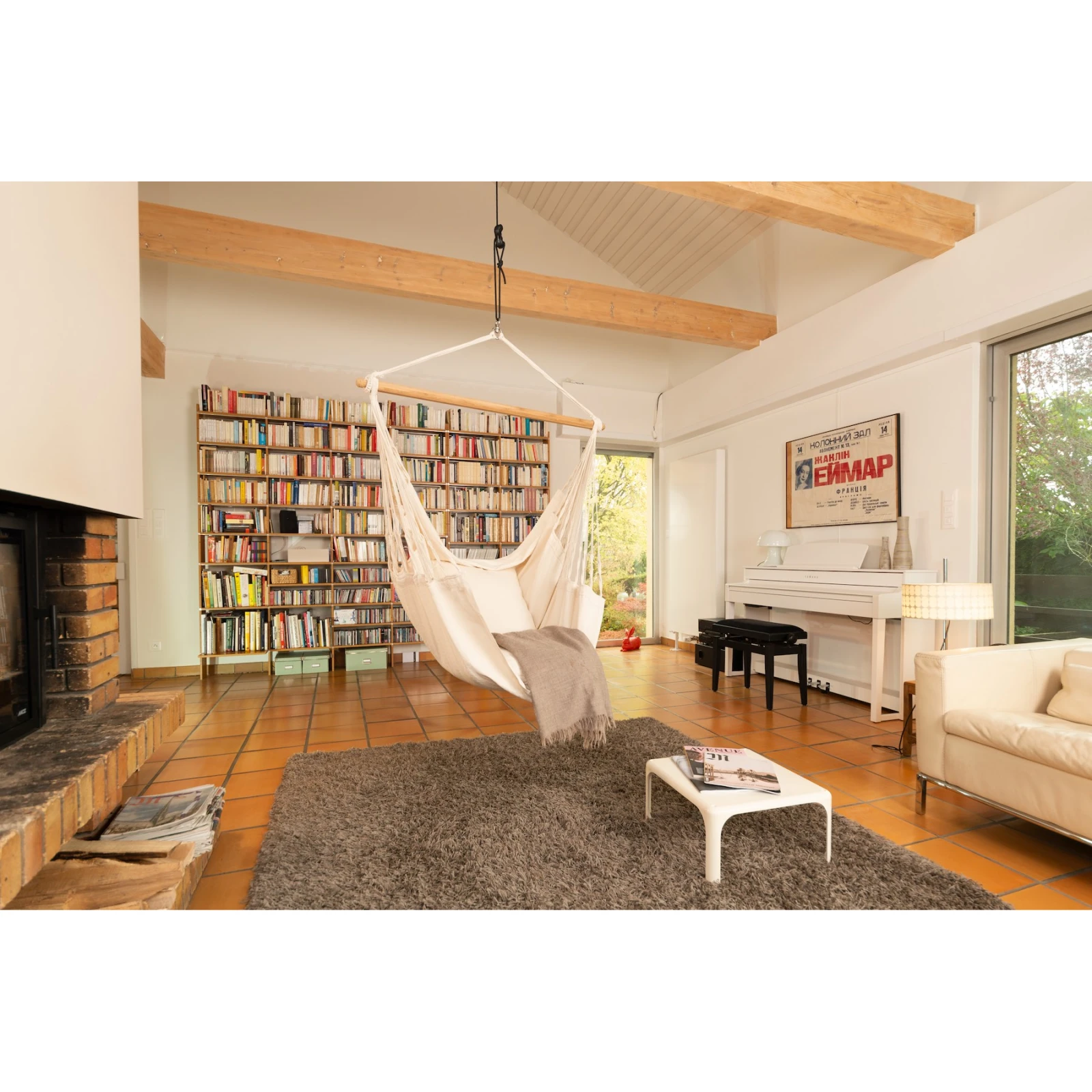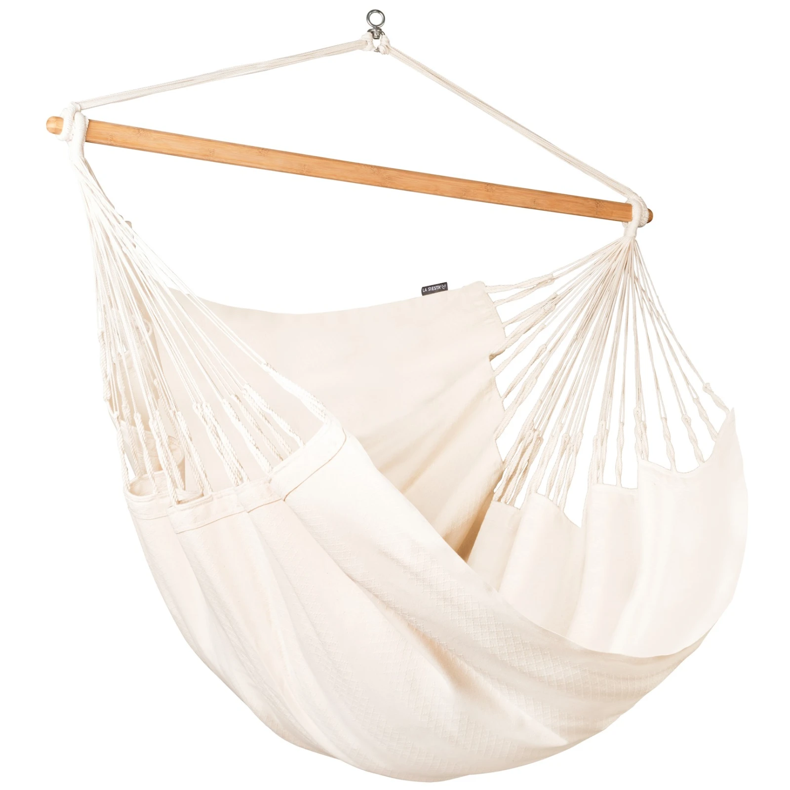 Seine großzügigen Maße (210 cm Länge) laden zum entspannten Sitzen oder Liegen ein und sein Komfort ist mit dem einer Hängematte vergleichbar. Wenn Sie einen kompakteren Hängesessel suchen, empfehlen wir Habana Comfort.