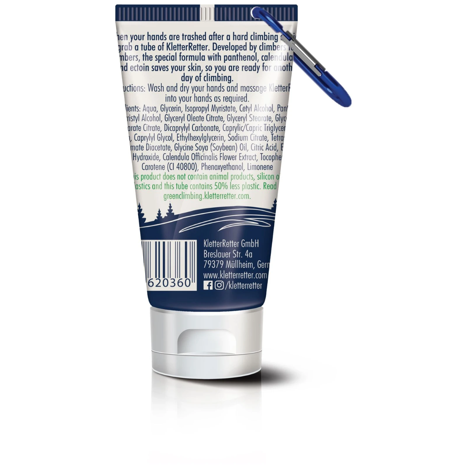 KletterRetter Handcreme ist eine schnell einziehende, nicht fettende Handcreme zur Handpflege nach dem Klettern. Die von Experten entwickelte und von Kletterern getestete Formel hilft Ihrer Haut, sich zu regenerieren und bereitet Sie auf einen weiteren Tag an der Wand vor.