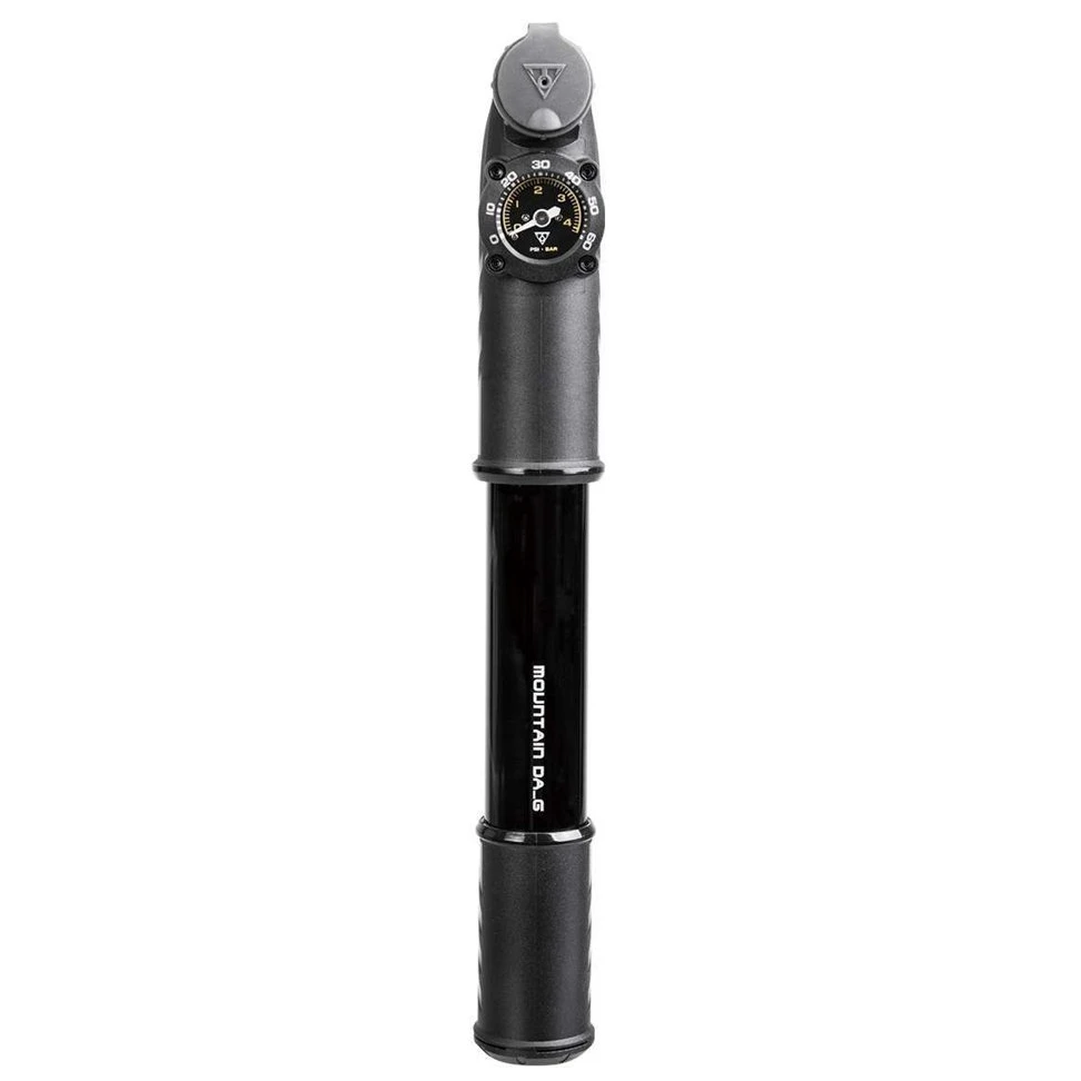 Kompakte Mountain Da Fahrradpumpe der Marke Topeak ist für das zuverlässige Aufpumpen von Fahrrädern mit großem Volumen (Fatbike), hohem Druck (MTB) oder Trekkingreifen konzipiert. Für maximale Geschwindigkeit und Komfort ist die Pumpe mit einem übergroßen Aluminiumzylinder und der Dual-Action-Technologie (DA)ausgestattet, die sowohl beim Drücken als auch beim Herausziehen des Kolbens ein Aufpumpen ermöglicht. Die G-Version verfügt zusätzlich über ein analoges Druckmessgerät.