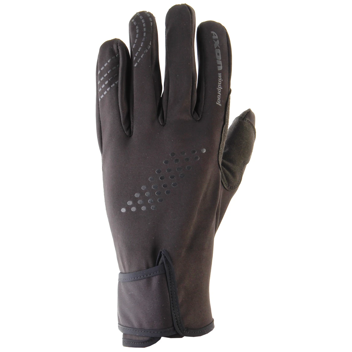Sporthandschuhe Axon können bei kaltem Wetter beim Wandern oder Radfahren verwendet werden. Sie verfügen über eine winddichte Membran und einen verstärkten Daumen. Dank des Klettverschlusses lassen sie sich leicht anziehen und an der Hand festhalten.
