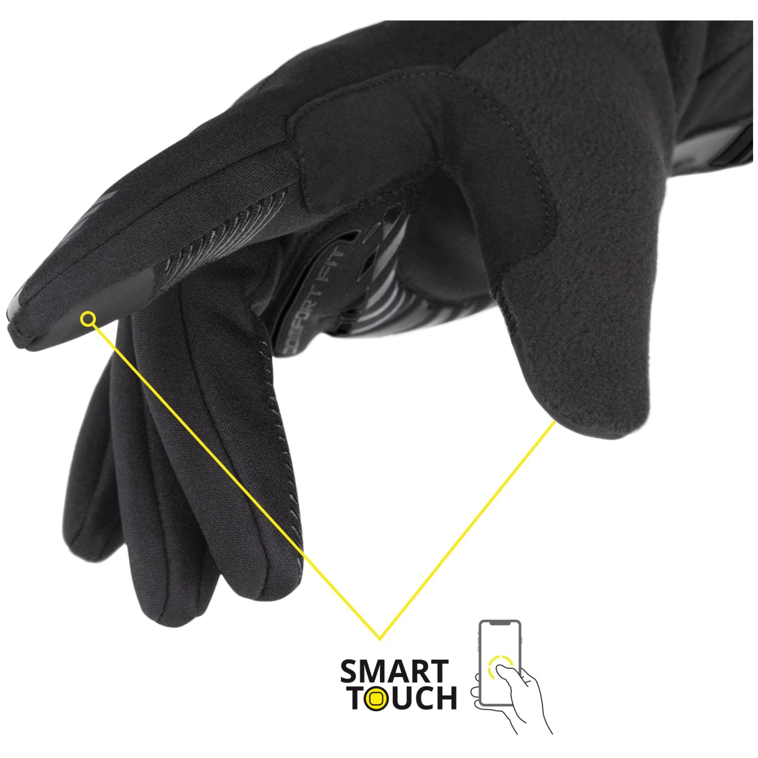 Die Herren-Handschuhe Etape Lake 2.0 WS+ sind die ideale Wahl, wenn Sie Handschuhe suchen, die sich leicht an- und ausziehen lassen. Dafür sorgt ein extra verlängertes Gummiband am Handgelenk sowie eine Schlaufezum bequemen Anziehen. Zwischen Daumen und Zeigefinger finden wir verstärktes Material. Für die Wärme in den Handschuhen sorgt das bewährte Thinsulate 3M-Material auf der Ober- und Handfläche des Handschuhs, das über hervorragende Wärmeisolationsparameter verfügt und fast doppelt so warm ist wie andere verwendete Materialien. Es kann die Körperwärme effektiv speichern und gleichzeitig überschüssige Feuchtigkeit vom Körper wegleiten. Dank der SmartTouch-Schicht ermöglichen die Handschuhe die Steuerung des Touchscreens und verfügen außerdem über eine Anti-Rutsch-Silikonbeschichtung an den Handflächen. Die Softshell-Membran sorgt dafür, dass die Handschuhe winddicht und bedingt wasserdicht sind. Ergänzt werden sie durch Fleece am Daumen, das den Schweiß ableitet. Selbstverständlich dürfen auch Sicherheitsreflektorelementenicht fehlen. Die Form der Handschuhe ist anatomisch geformt, sodass sie perfekt passen und Ihre Bewegungsfreiheit nicht einschränken.
