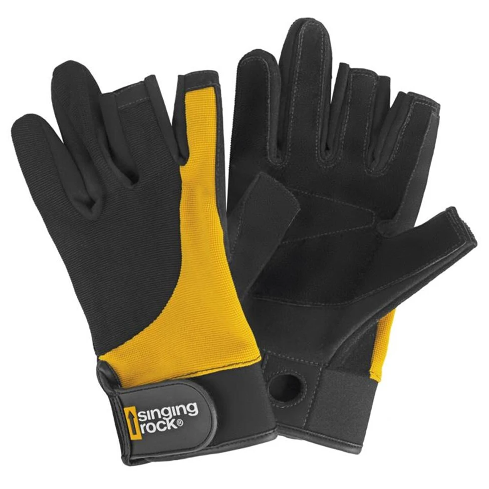 Leichte Handschuhe mit hervorragendem Griff und drei offenen Fingern für sanfte Manipulation sind eine gute Wahl für Arbeiten in der Höhe, an Klettersteigen und in Seilparks. Die Handfläche besteht aus einer strapazierfähigen Doppelschicht aus synthetischem Rindsspaltleder der Güteklasse A. Zwischen Daumen und Zeigefinger befindet sich im stark beanspruchten Bereich eine zusätzliche Verstärkung. Zum einfachen und schnellen Ausziehen der Handschuhe befinden sich an Mittel- und Ringfinger zwei spezielle Schlaufen. Die Oberhand des Handschuhs besteht aus hoch atmungsaktivem und abriebfestem Nylon.