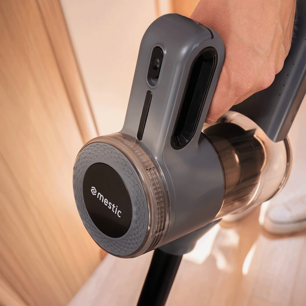 Der Staubsauger verwendet anstelle eines Beutels einen herausnehmbaren Staubbehälter mit einem Fassungsvermögen von 1 Liter. Es reicht, ihn einfach per Knopfdruck zu leeren. Im Inneren befinden sich ein HEPA-Filter und ein Edelstahlfilter, die Staubpartikel effektiv auffangen und leicht zu reinigen sind.