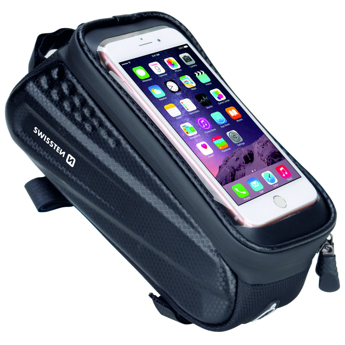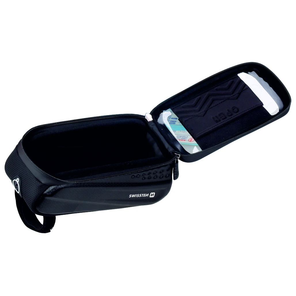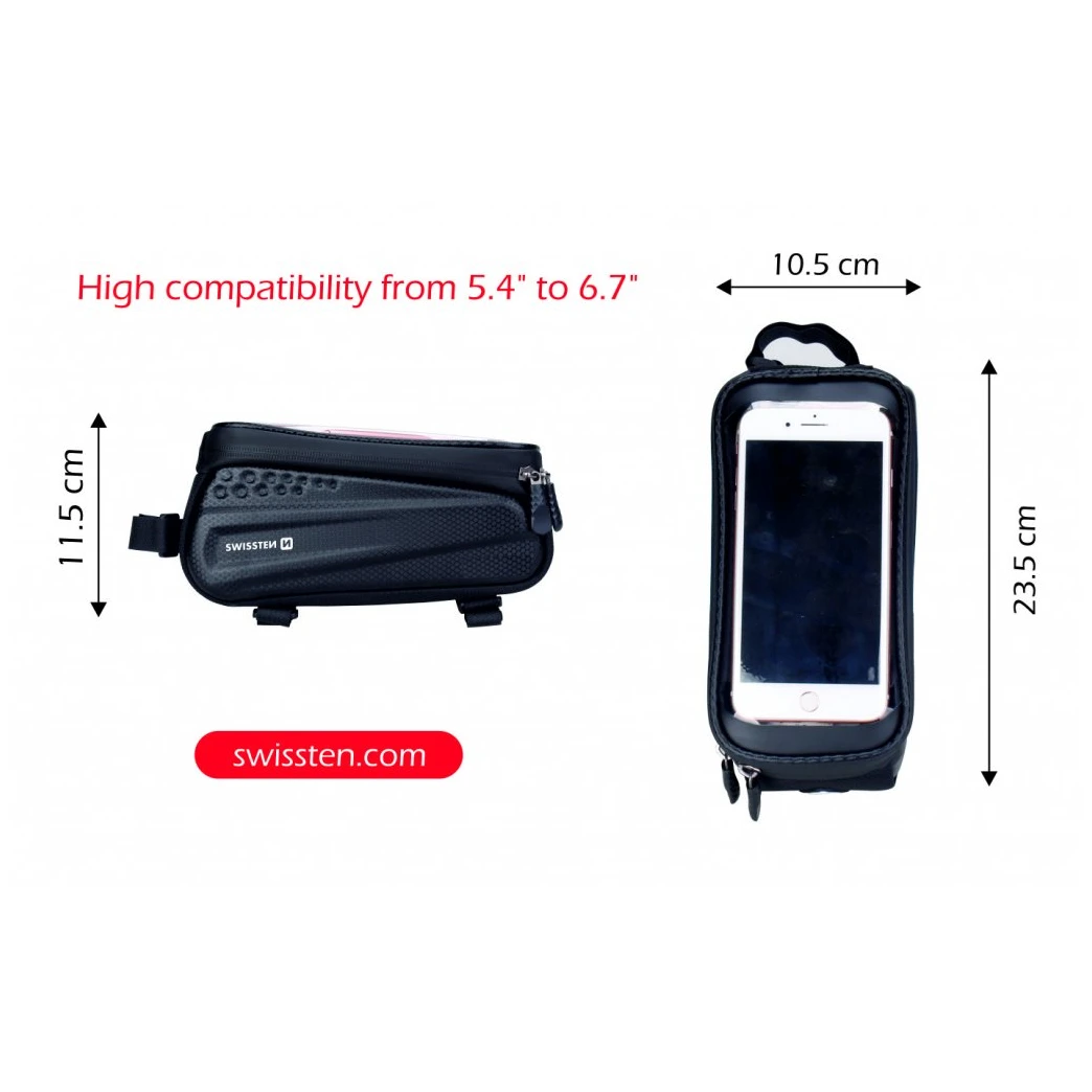 Wasserdichte Fahrradtasche Swissten Nr. 2 der Marke Swissten ist aus robustem Material gefertigt, sodass Ihr Smartphone und andere persönliche Gegenstände maximal vor Beschädigungen und widrigen Witterungsbedingungen geschützt sind. Das Gehäuse verfügt über einen Kopfhöreranschluss und transparenten Glimmer.