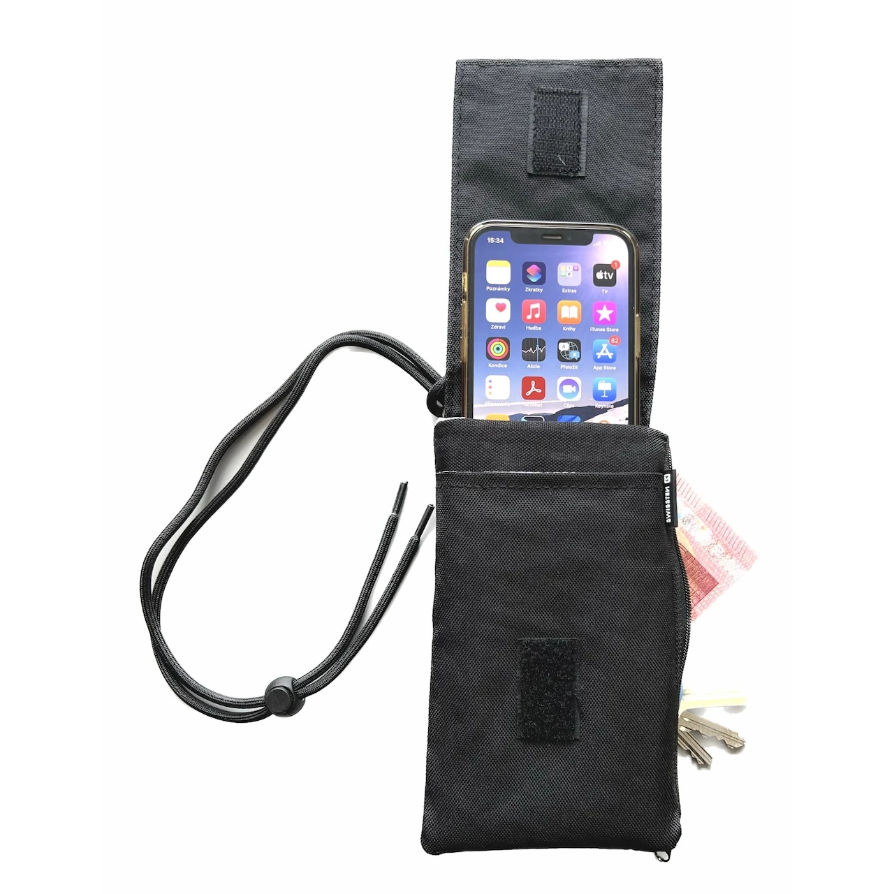Die Stofftasche Swissten POCKET 6,4" verfügt über insgesamt drei Taschen. Eine 6,4"-Klettverschlusstasche für ein Smartphone, eine kleinere Klettverschlusstasche und eine Sicherheitstasche vollständig verschließbar mit Reißverschluss. Dank dieser Funktion bietet die Tasche Platz für alle Ihre wichtigen Dokumente und Ihr Geld. Mit der praktischen Schlaufe und dem Karabiner können Sie die Tasche an einem Gürtel befestigen, sicher im Inneren eines Rucksacks befestigen oder an einem Band um den Hals tragen.