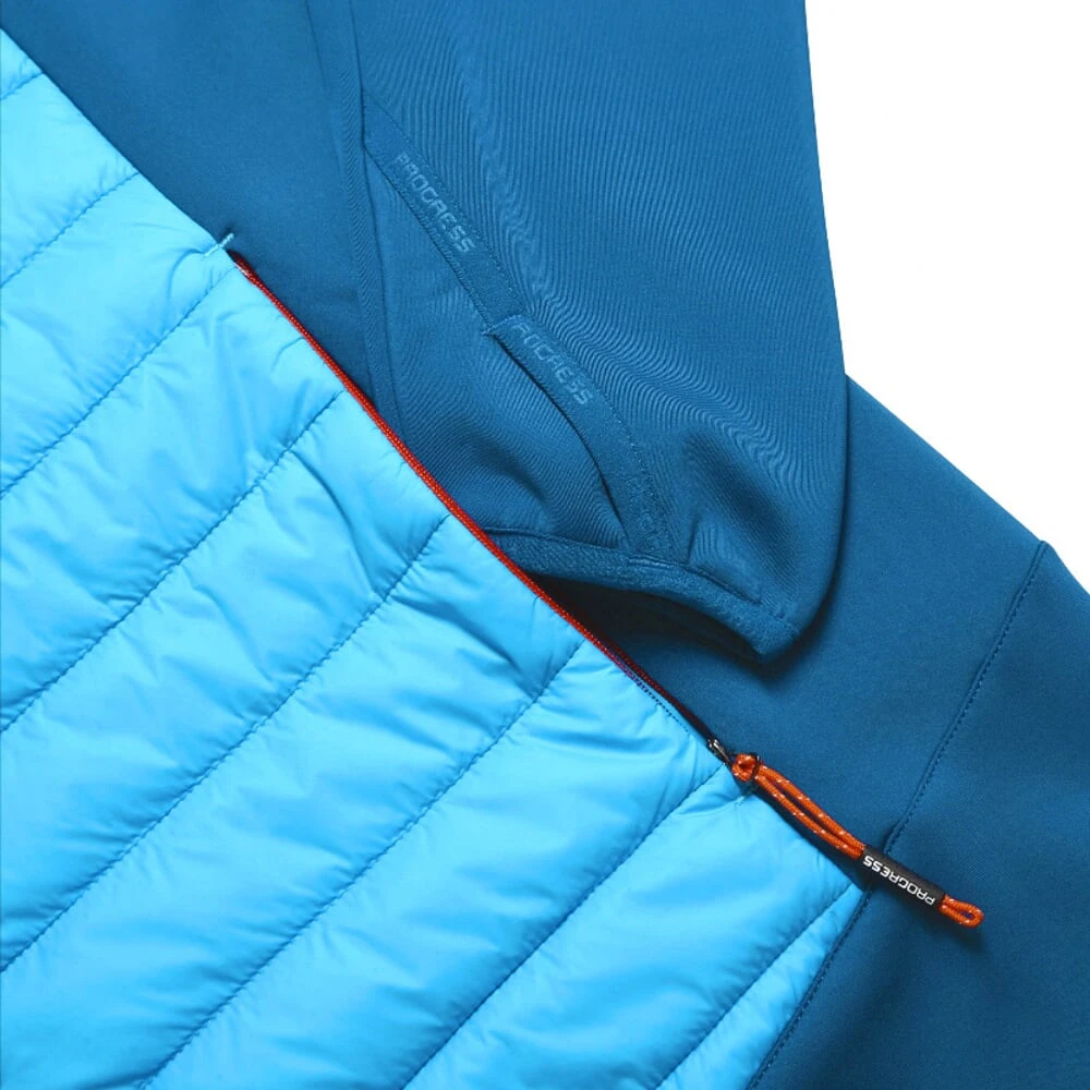 Das Hybrid Herren-Funktionssweatshirt der Marke Progress kombiniert zwei Materialarten. Der vordere gesteppte, isolierte Teil ist mit einer Markenwattierung von 3M™ Thinsulate™gefüllt. Es handelt sich um eine sehr leichte, isolierende Mikrofaser, die die Körperwärme wirksam speichert und gleichzeitig überschüssige Feuchtigkeit ableitet und so hervorragende Wärmeisolationseigenschaftengewährleistet. Ärmel und Rücken bestehen aus einem flexiblen Polyester-Strick mit Microfleece auf der Innenseite, der nicht nur hervorragend vor Kälte schützt, sondern auch Schweiß schnell ableitet und höchsten Tragekomfort sowie uneingeschränkte Bewegungsfreiheit garantiert.