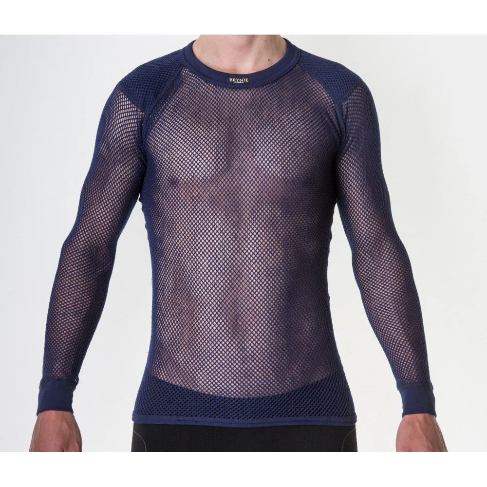 Herren Mesh- Funktions-T-Shirt Brynje Super Thermo mit langen Ärmeln, gepolsterten Schultern und rundem Ausschnitt. Aus 100 % Polypropylen, trocknet schnell. Das Original-Mesh leitet Schweiß ab und isoliert mit Luft. Sie können es das ganze Jahr über nutzen.