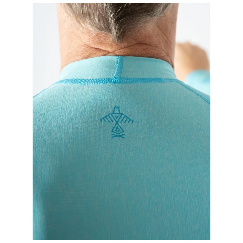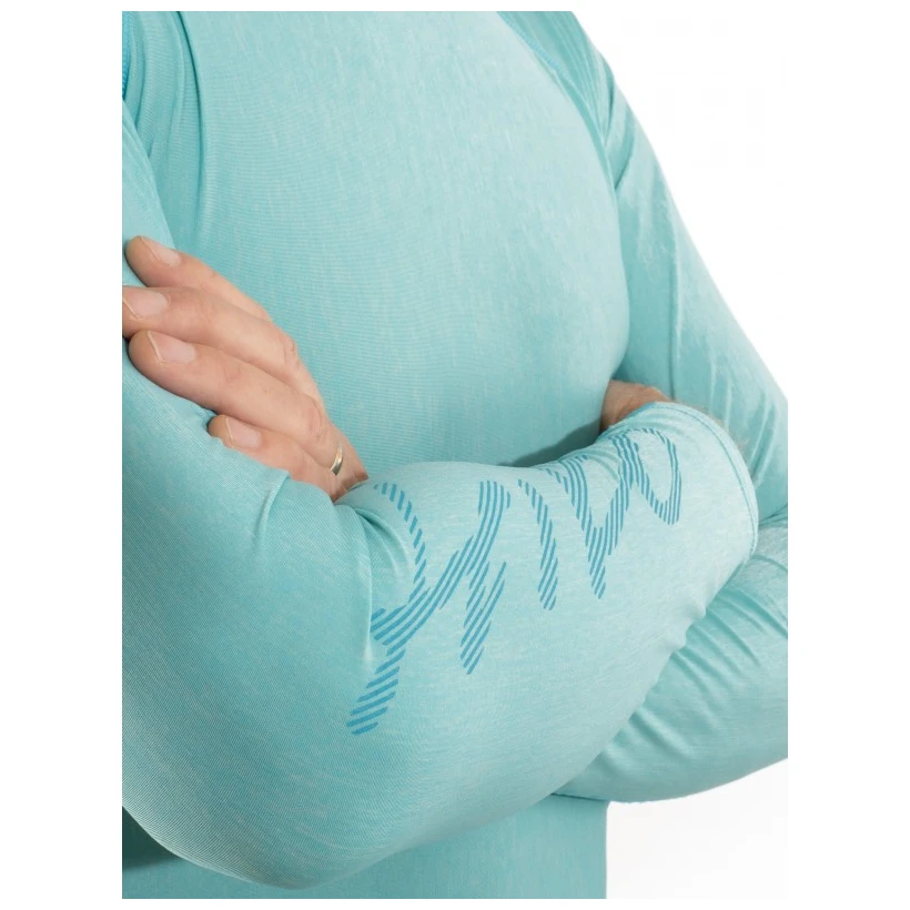 Durch die körperbetonte Schnittführung schmiegt es sich optimal an deinen Körper. Das spezielle DEW-Gewebe besteht aus 100 % recyceltem Material, nimmt nicht so viel Wasser auf, trocknet schnell und bietet den höchstmöglichen Sonnenschutz von UPF 50+. Plüschfasern auf der Innenseite bilden eine isolierende Schicht zwischen Haut und Shirt, so dass das Shirt unter der Jacke angenehm warm ist und den Schweiß nach außen ableitet.