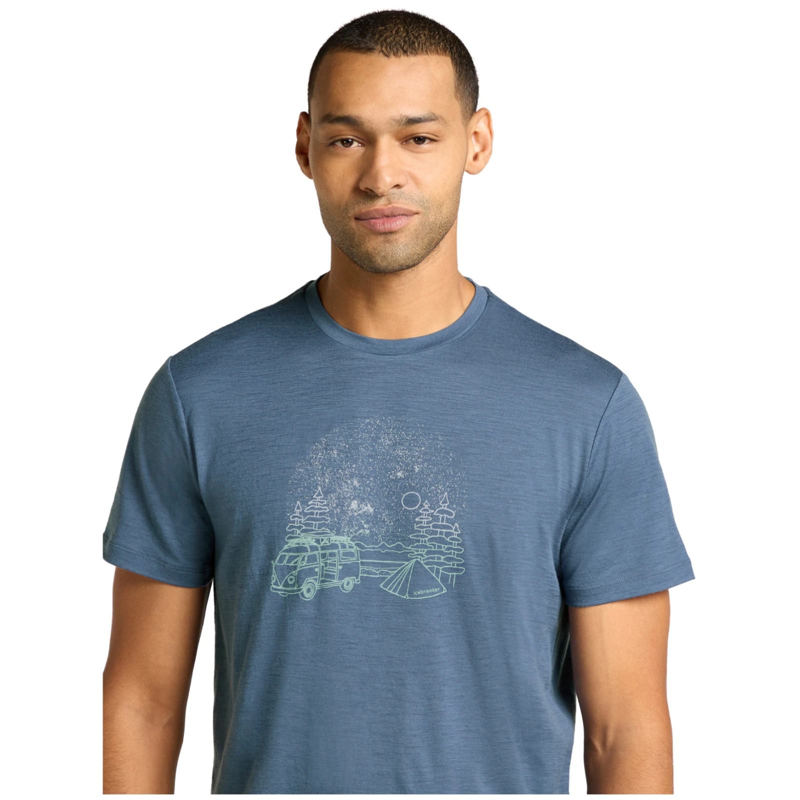 Das Icebreaker M Mer 150 Tech Lite III SS Tee Van Camp ist ein vielseitiges Funktions-T-Shirt aus hochwertiger Merinowolle, das für Komfort und Leistung bei jedem Abenteuer entwickelt wurde. Dank seiner Leichtigkeit, Atmungsaktivität und natürlichen Geruchsresistenz eignet es sich perfekt für Outdoor-Aktivitäten und den Alltag. Die Vorderseite ziert eine handgezeichnete Illustration einer Campingnacht unter den Sternen und spiegelt den Entdeckergeist wider.