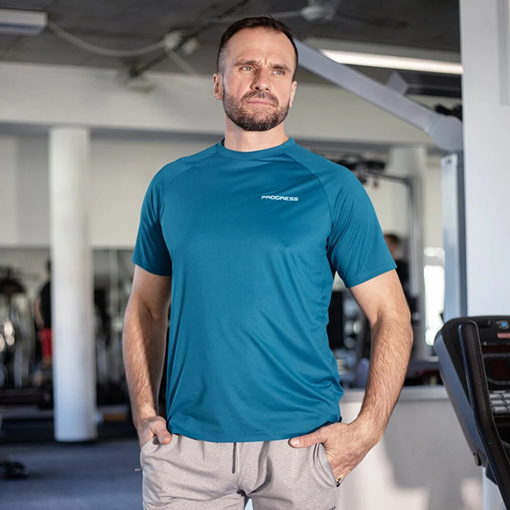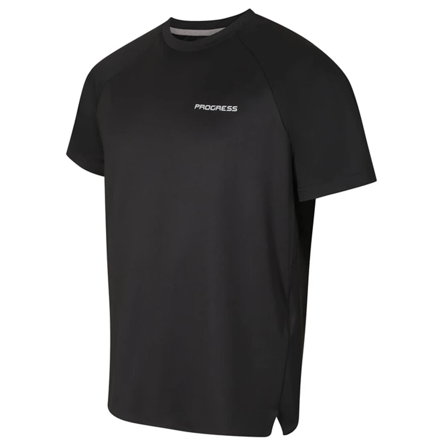 Herren Sport T-Shirt Driver von Progress ist aus einem feinen, sehr angenehm anzufassenden Material gefertigt, das dank seiner Zusammensetzung auch für schnelles Trocknen sorgt. Im Bereich des Schlüsselbeins und des Rückens hat das T-Shirt lasergeschnittene Löcher, die eine einfache Luftzirkulation gewährleisten. Der untere Saum des T-Shirts ist mit einer Technologie verklebter Nähte versehen, die für mehr Flexibilität und ein angenehmes Tragegefühl sorgt. Der bequeme, lockere Schnitt sitzt perfekt und das verwendete Material sorgt für ein angenehmes Tragegefühl. Reflektierende Elemente sind selbstverständlich. Das T-Shirt ist universell bei zahlreichen sportlichen Aktivitäten einsetzbar, insbesondere auch im Lauf- oder Fitnessbereich.