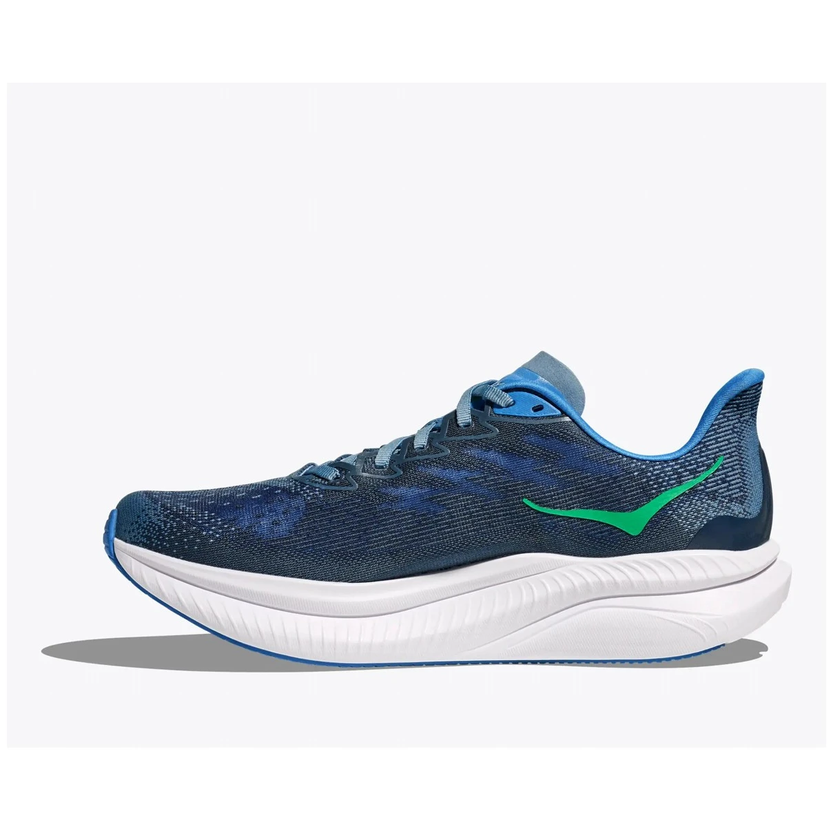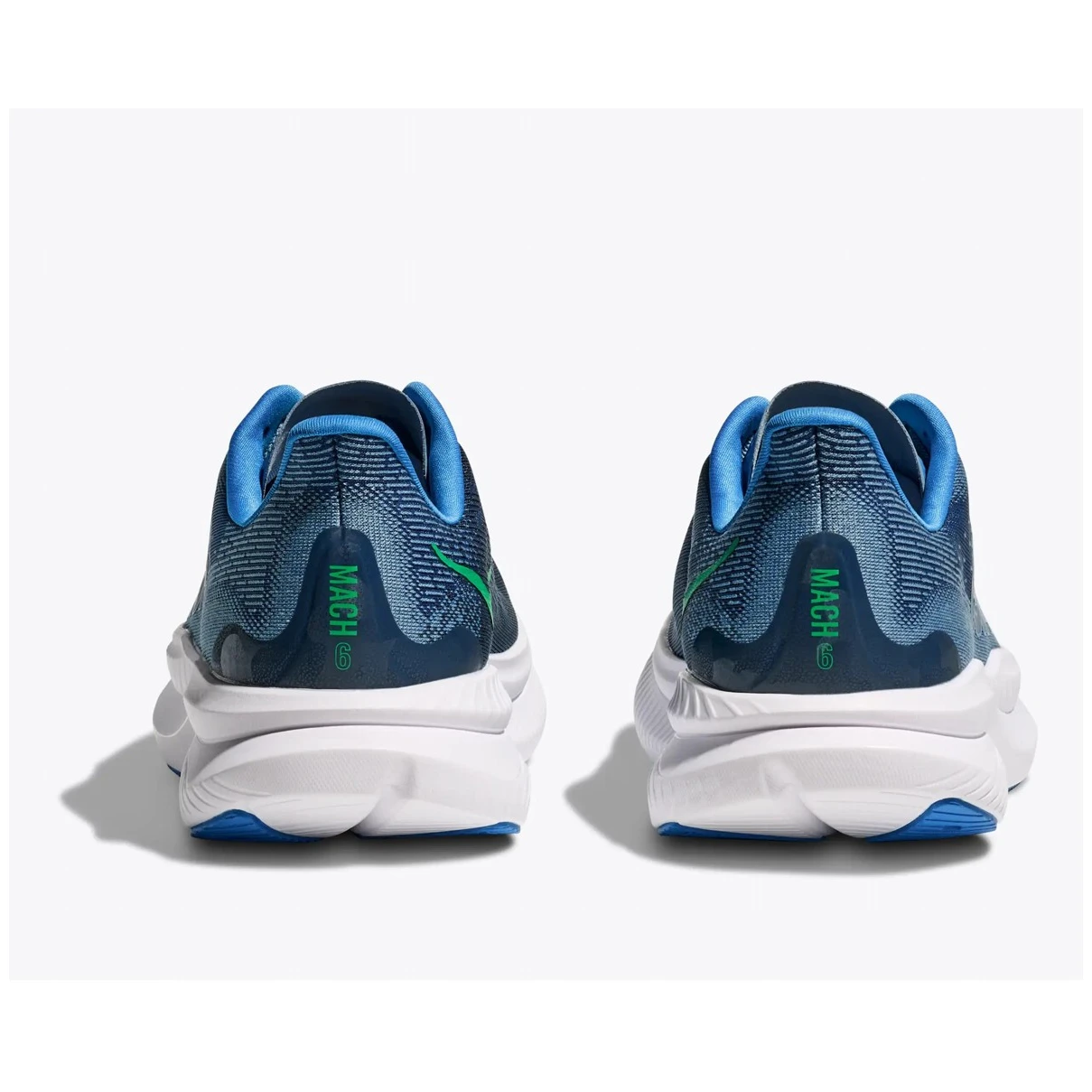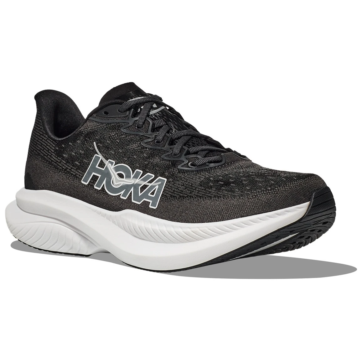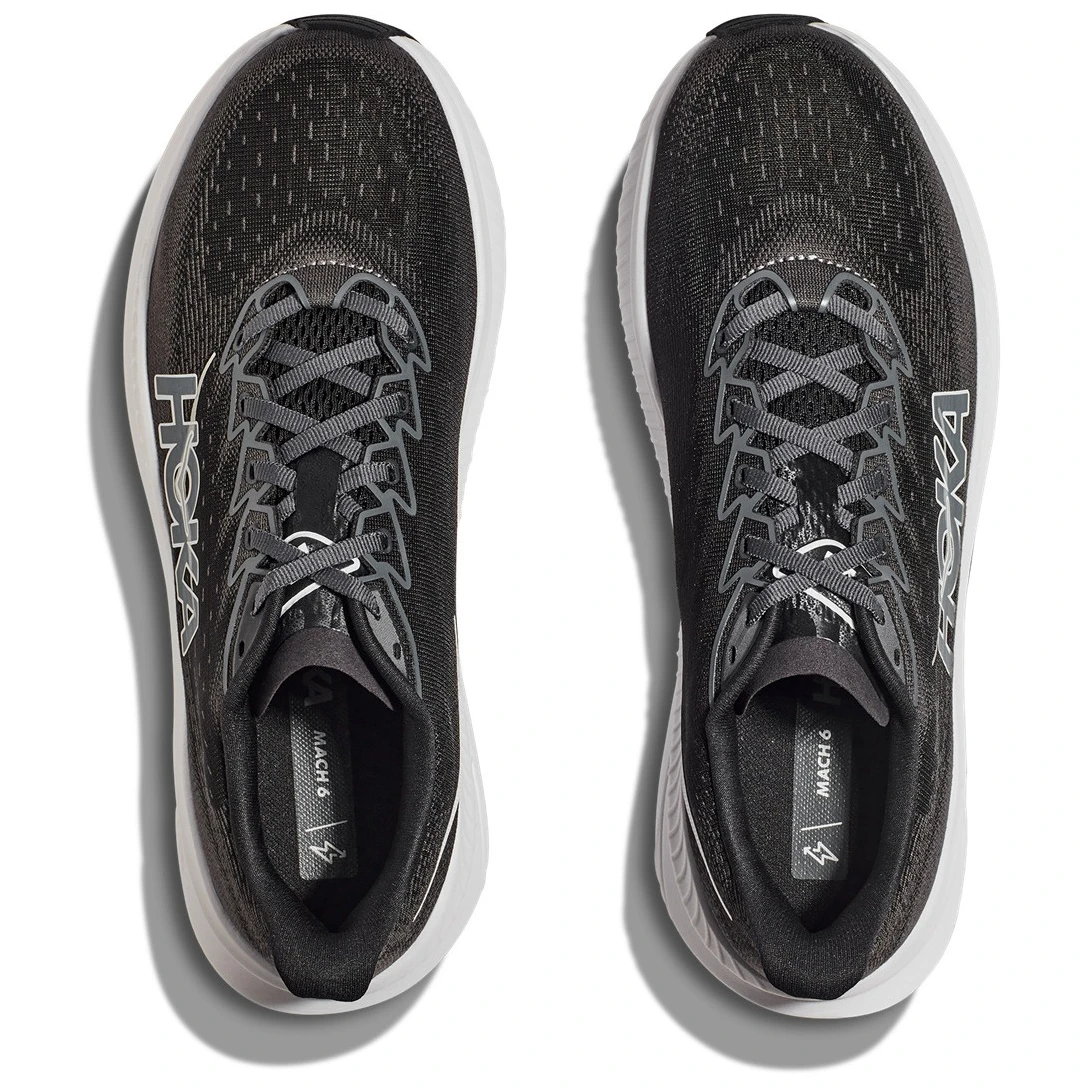 Die M Mach 6 Herren Laufschuhe der Marke Hoka sind sehr leicht und reaktionsschnell. Dieses Schuhmodell ist dank der Schaumstoff-Mittelsohle und der erhöhten Haltbarkeit der Gummi-Laufsohle auf zusätzliche Energierückgabeabgestimmt. Neben geschwindigkeitsorientierten Designdetails gibt es auch ein neues Creel Jacquard Mesh-Obermaterial mit zonaler Atmungsaktivität und einem inneren Zwickel, der für ultimativen Komfortsorgt.