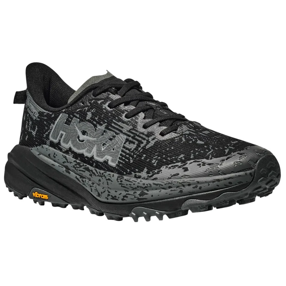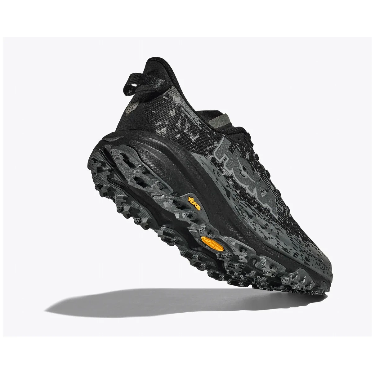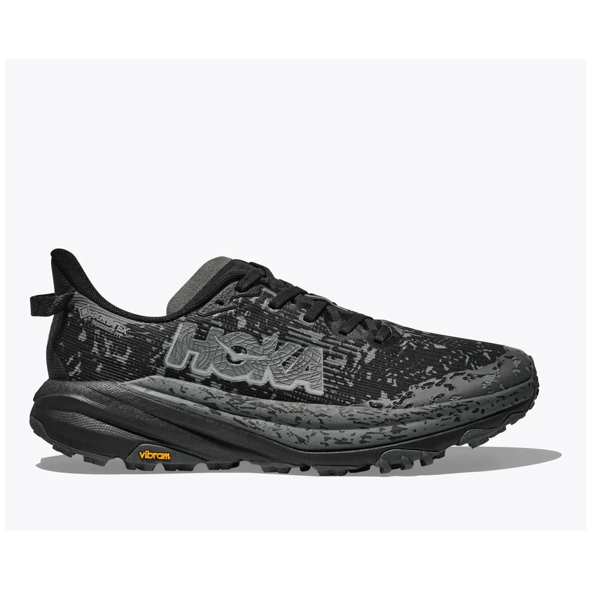 Der Laufschuh Speedgoat 6 Gtx Wide der Marke Hoka ist für technische Trailskonzipiert. Die 6. Generation kehrt mit geringem Gewicht und großartiger Traktionzurück. Dieser Schuh verfügt von der Sohle bis zu den Schnürsenkeln über eine Vibram® Megagrip-Mittelsohle mit Traction Lug für besseren Halt auf lockerem Untergrund. Der Speedgoat 6 behält die gleiche Sohlenhöhe und Rockerform (Krümmung der Sohle) bei, verwendet eine leichtere Mittelsohlenmischung und ein dickeres zweilagiges Jacquard-Netz, das auf jedem Gelände Vertrauen vermittelt.
