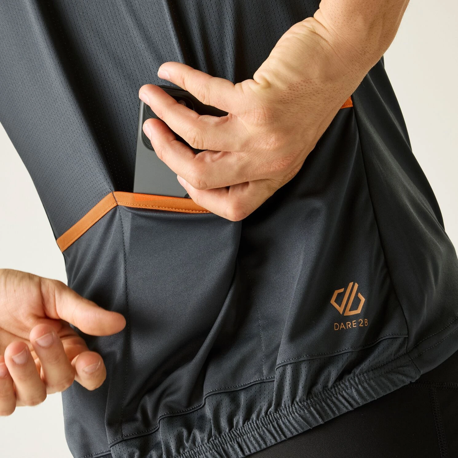 Leichtes Herren-Radtrikot Dare 2b Protraction mit kurzen Ärmeln und durchgehendem Belüftungsreißverschluss. Es besteht aus kühlem, schweißableitendem Recyclingstoff, der besonders weich und leicht ist. Der integrierte antibakterielle Geruchsschutz sorgt dafür, dass Sie sich den ganzen Tag lang frisch fühlen. Es verfügt über drei Gesäßtaschen zur Aufbewahrung wichtiger Dinge. Reflektierende Details machen Sie bei Nachtfahrten sichtbar.