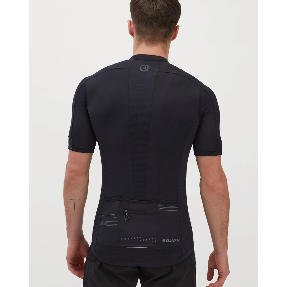 Das Herren-Radtrikot Ceno Silvini mit durchgehendem Reißverschluss aus schnelltrocknendem QuatroFLEX-Material bietet einen elastischen Schnitt, Silikonbesatz und eine Tasche auf der Rückseite.