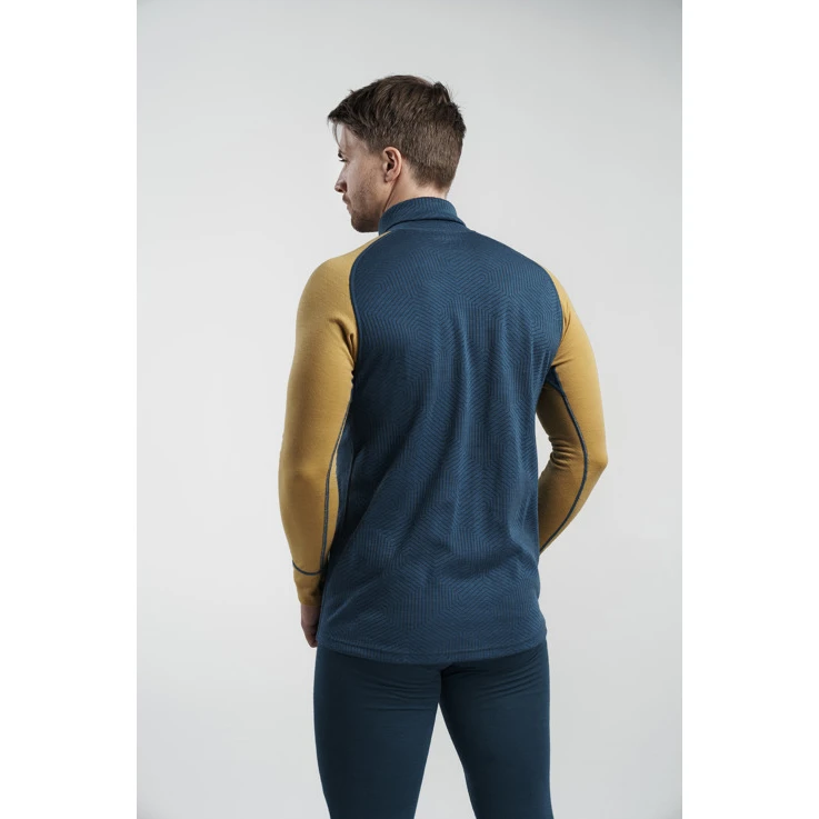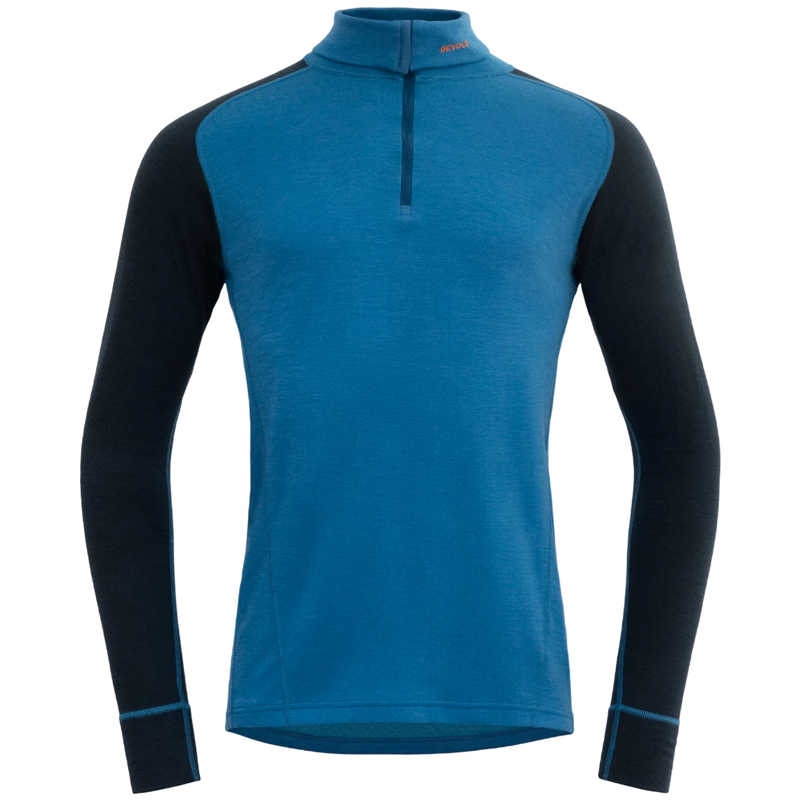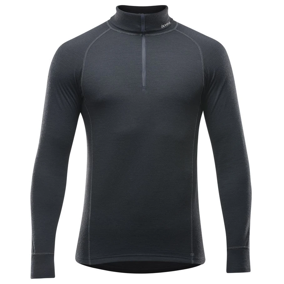 Rollkragenpullover Devold Duo Active Man Zip Neck schmiegt sich durch seinen perfekten Schnitt an den Körper und ermöglicht dank der Unterstützung des sehr flexiblen Materials maximale Bewegungsfreiheit. Der Rollkragen ist aus zwei Lagen genäht, die Außenlage besteht aus feiner Merinowolle und das Innenmaterial ist Thermo Cool Eco2. Die Funktionsfaser Thermo Cool Eco 2 leitet Feuchtigkeit schnell vom Körper weg, während Merinowolle durch hervorragende isolierende Eigenschaften überzeugt und dafür sorgt, dass Sie auch dann warm bleiben, wenn Sie nass werden oder schwitzen.