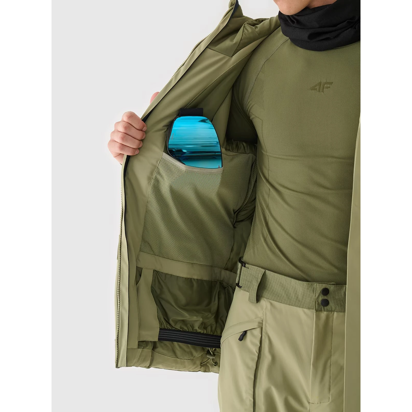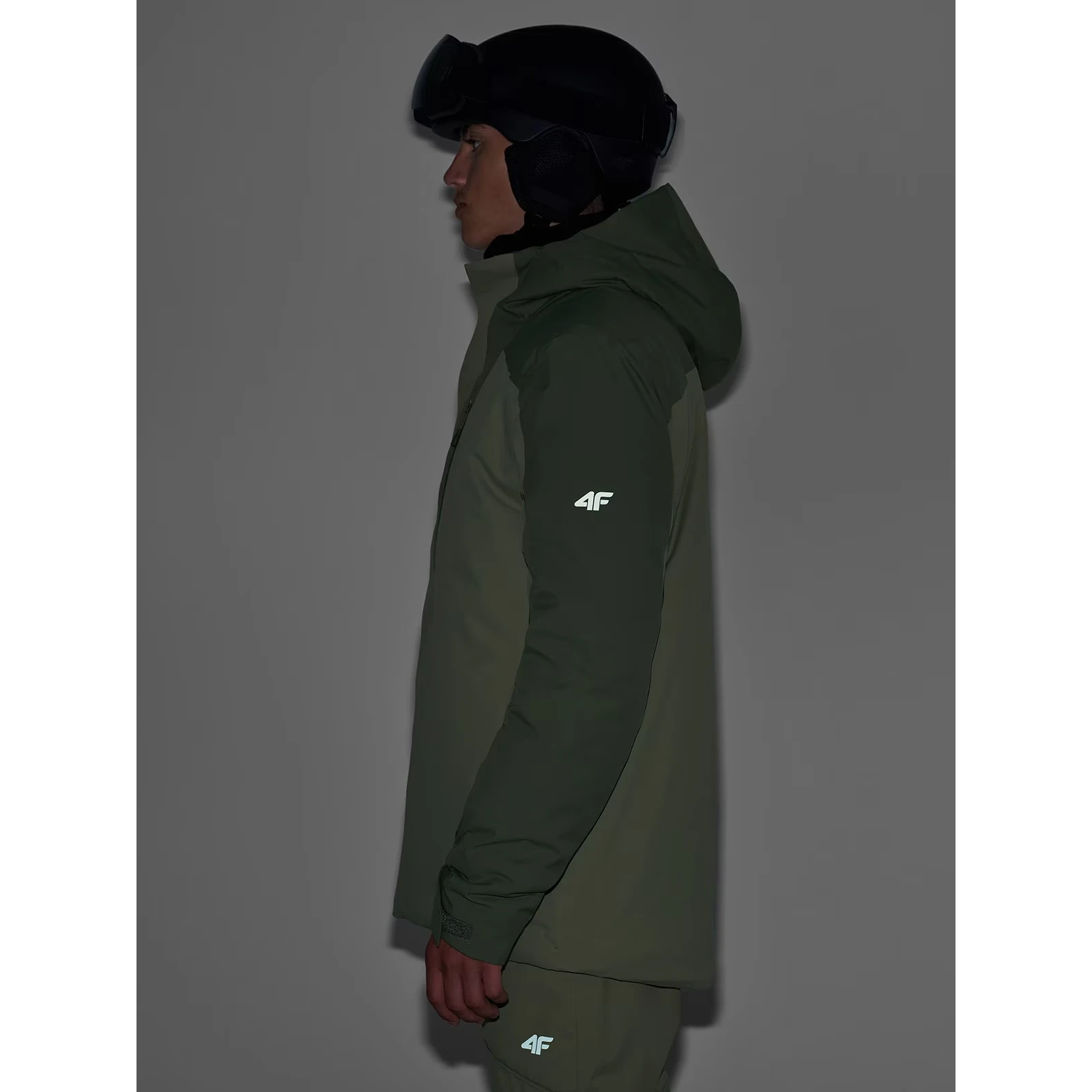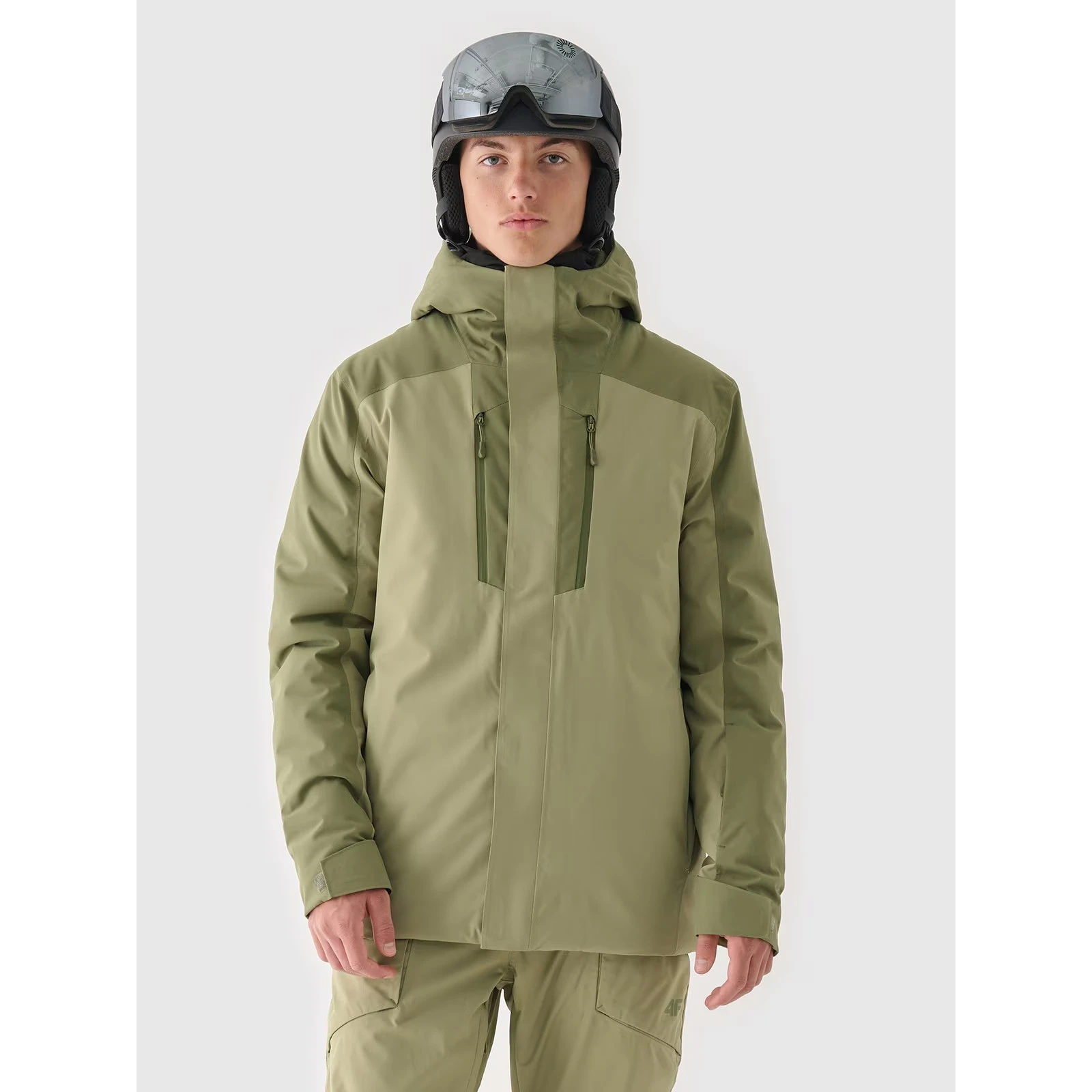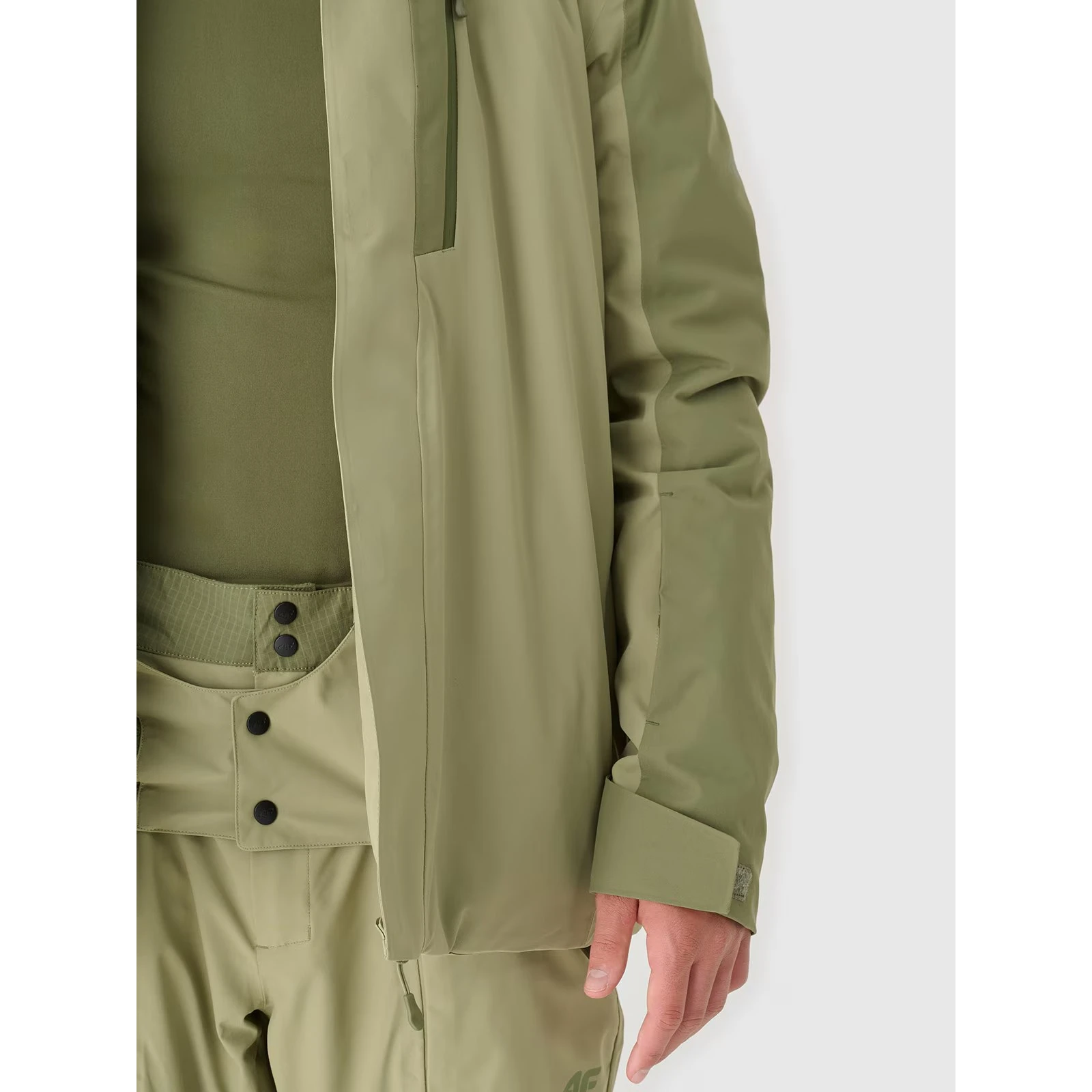 Die Skijacke Men's Technical Jacket M575 der Marke 4F ist mit einer NeoDry-Membran mit einem Parameter von 10000/8000 ausgestattet, was bedeutet, dass sie leichtem Regen oder Schnee standhält und gleichzeitig bei hochintensiven Aktivitäten einen optimalen Feuchtigkeitstransport gewährleistet. Die leichte Polyesterisolierung sorgt für optimalen Wärmekomfort. Eine hydrophobe Imprägnierungsschicht überzieht die äußere Schicht des Materials und schützt es vor der Aufnahme von Wasser. Diese Schicht sorgt dafür, dass die Feuchtigkeit auf der Oberfläche des Stoffes oder Strickwarens kondensiert und anschließend ungehindert abfließen kann.