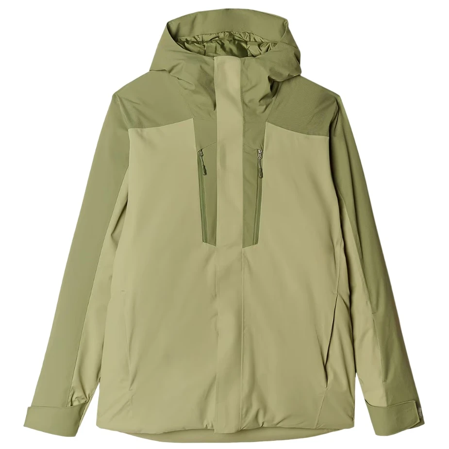 Die Jacke ist mit einer integrierten Kapuze mit Einstellmöglichkeiten ausgestattet. Der Hals wird durch einen hohen Kragen bedeckt, der zusätzlich vor Kälte und Wind schützt. Die Ärmel sind mit Manschetten mit Klettverschluss versehen. Es gibt eine Belüftung im Achselbereich mit einem Einweg-Reißverschluss , der unter einer Klappe verborgen ist und so die Luftzirkulation regulieren kann. Selbstverständlich sind ein offenes Brillenfach, reflektierende Elemente und ein integrierter Schneegürtelvorhanden.