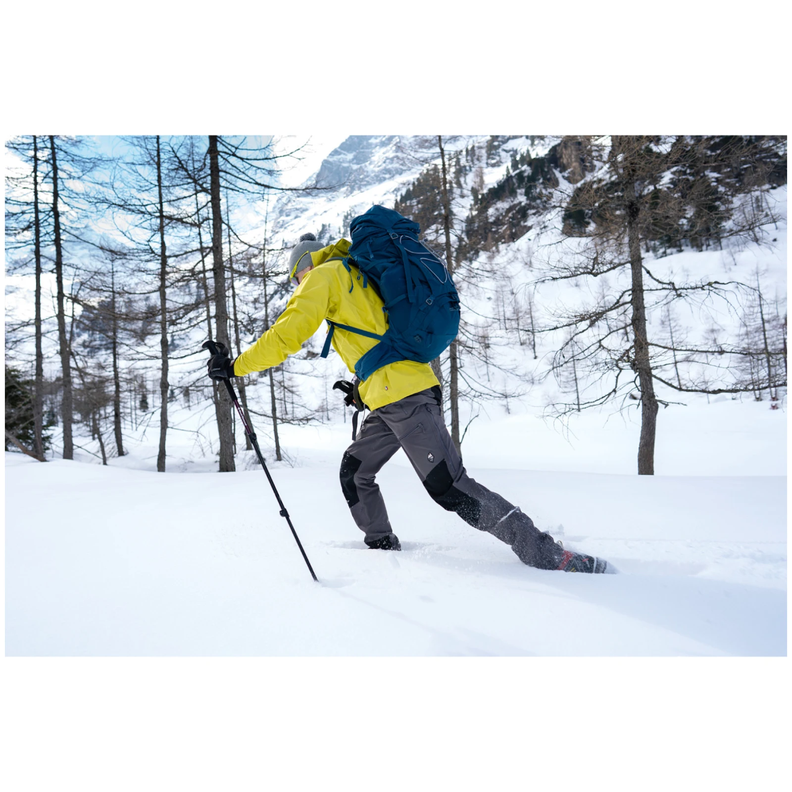 Bei erhöhter Aktivität werden Sie die seitliche Belüftung zu schätzen wissen, mit der Sie Ihre Körpertemperatur problemlos regulieren können. Dank des dehnbaren Zwickels passt sich die Hose sowohl an Skistiefel als auch an klassische Trekkingschuhe an.