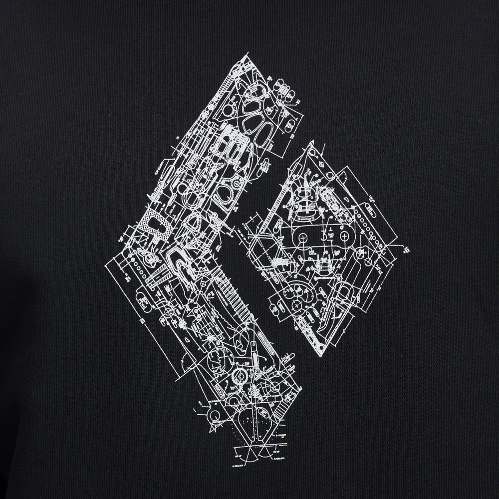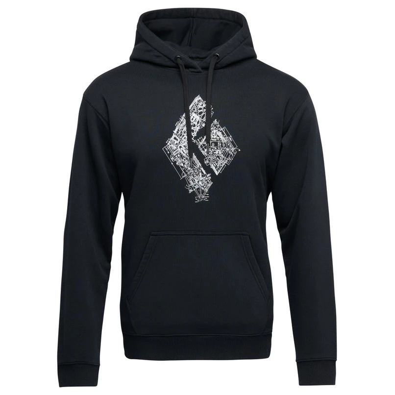 Klassischer Herren M Engineered Diamond Po Hoody der Marke Black Diamond mit Bio-Baumwoll-Anteil und verstellbarer Kapuze. Das Sweatshirt hat einen leicht übergroßen Schnitt und ein Logo auf der Brust, was es zu einem universellen Teil in Ihrer Garderobe macht.