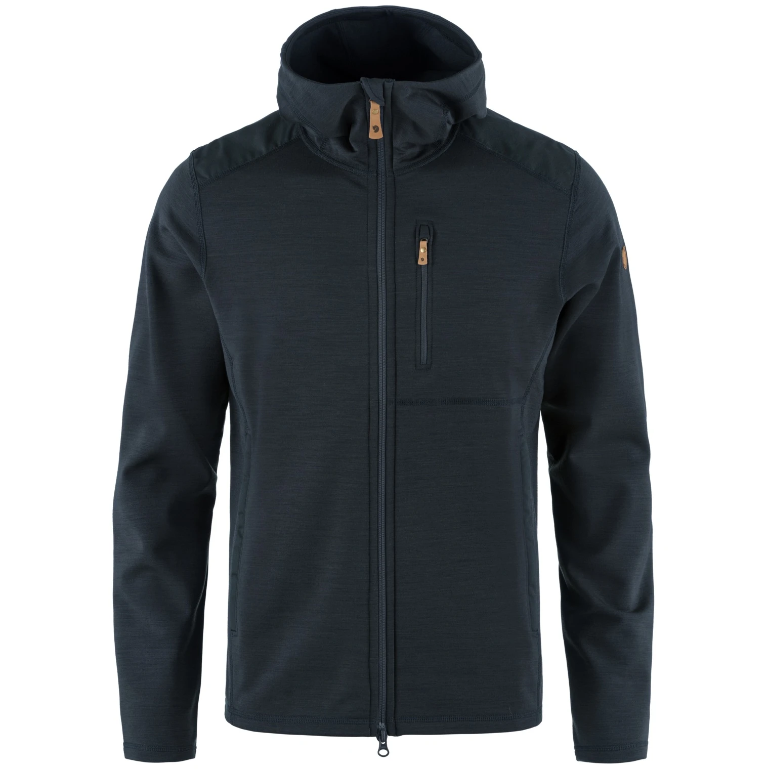 Das vielseitige Herren-Sweatshirt Keb Fleece Hoodie von Fjällräven eignet sich sowohl für die Berge im Sommer als auch zum Skifahren im Winter. Das Sweatshirt besteht aus einem funktionellen Wollmischgewebe, das die wärmeregulierenden Eigenschaften von Wolle mit der Strapazierfähigkeit von Polyester und der Geschmeidigkeit von Elastan verbindet. Die glatte Außenseite verringert die Reibung mit der oberen Schicht. Der Innenteil ist dann mit aufgerautem Fleece gefüttert, welches sich angenehm anfühlt.