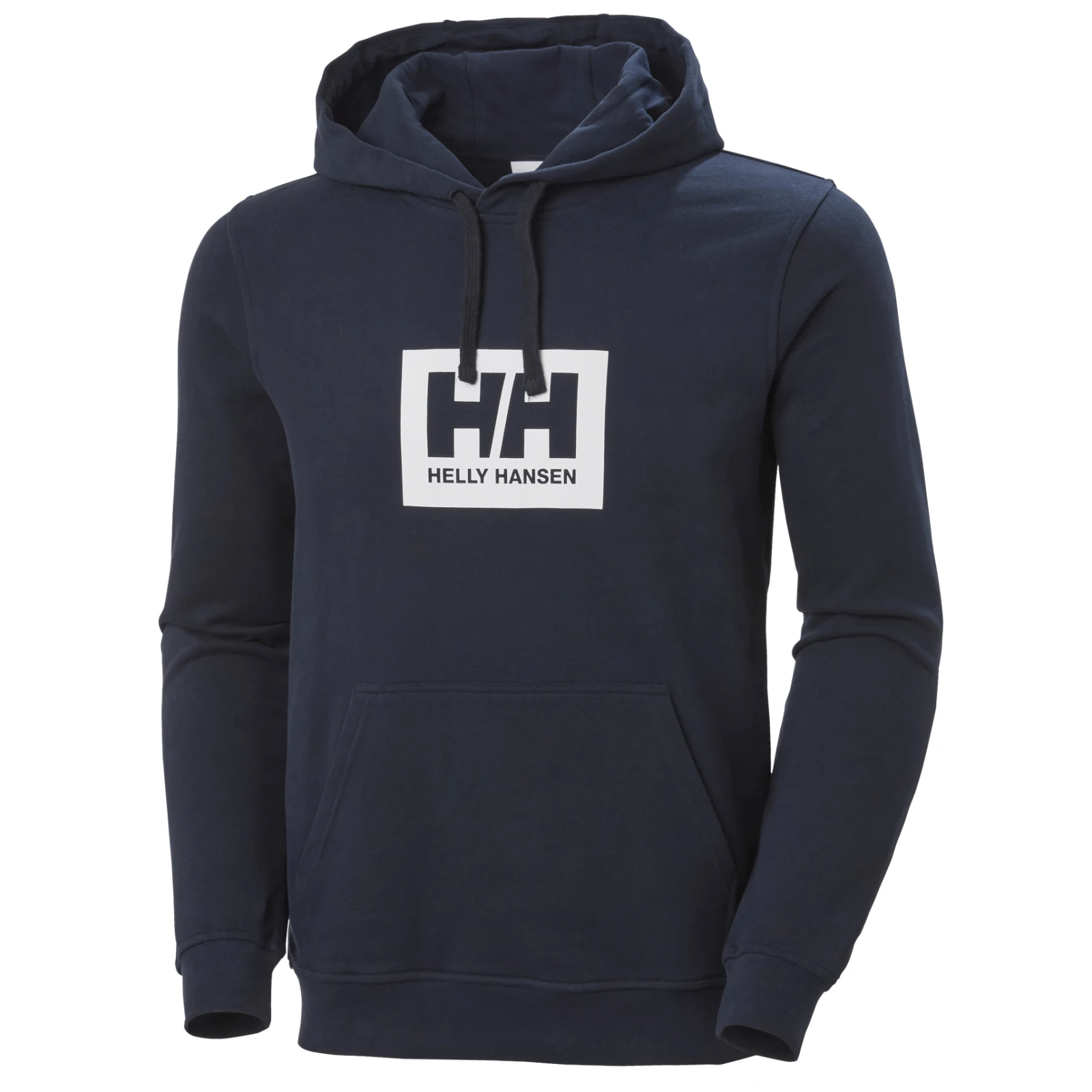 Weicher Baumwoll- Sweatshirt Hh Box Hoodie der Marke Helly Hansen mit gebürstetem Fleece innen und glatter Oberfläche außen.