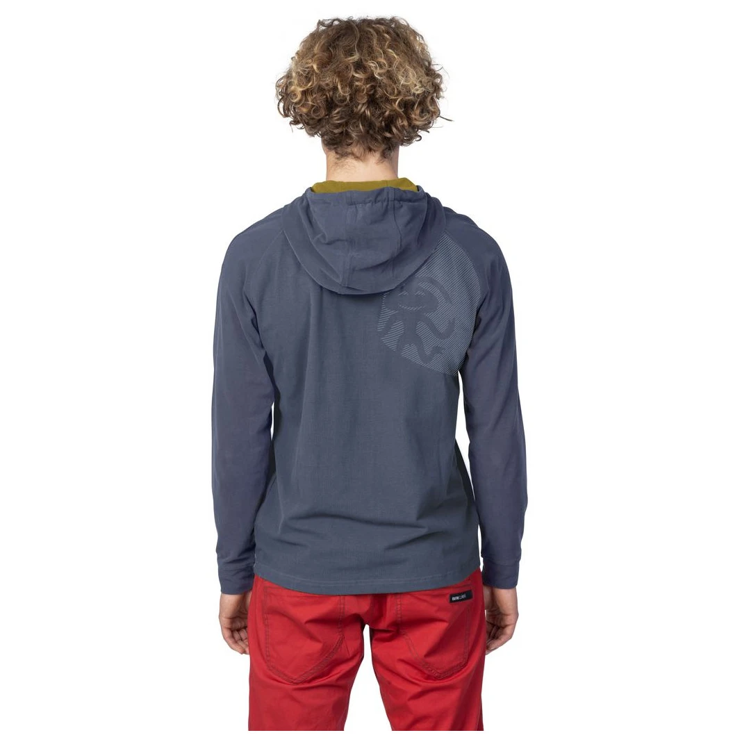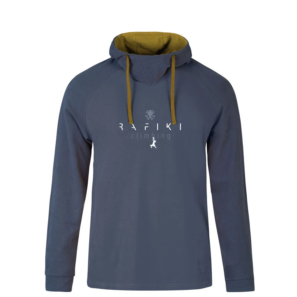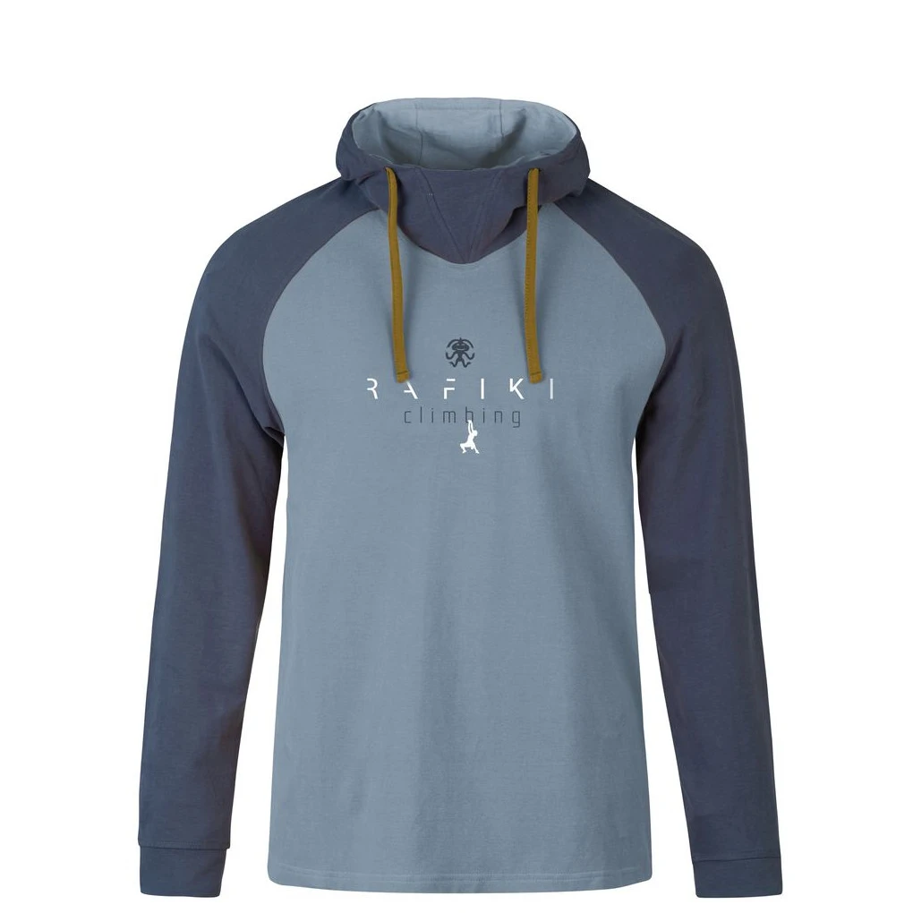 Leichtes und atmungsaktives Klettersweatshirt Traverse aus Bio- Baumwolle. Kletterer werden es besonders zum Aufwärmen oder wenn es nach dem Klettern nötig ist, zu schätzen wissen. Allerdings kannst du darin auch gut klettern, dank des Elasthan-Anteils ist es ausreichend dehnbar. Die kontrastierende Kapuze und die Kordeln erinnern sofort an den ursprünglichen Rafiki -Stil.