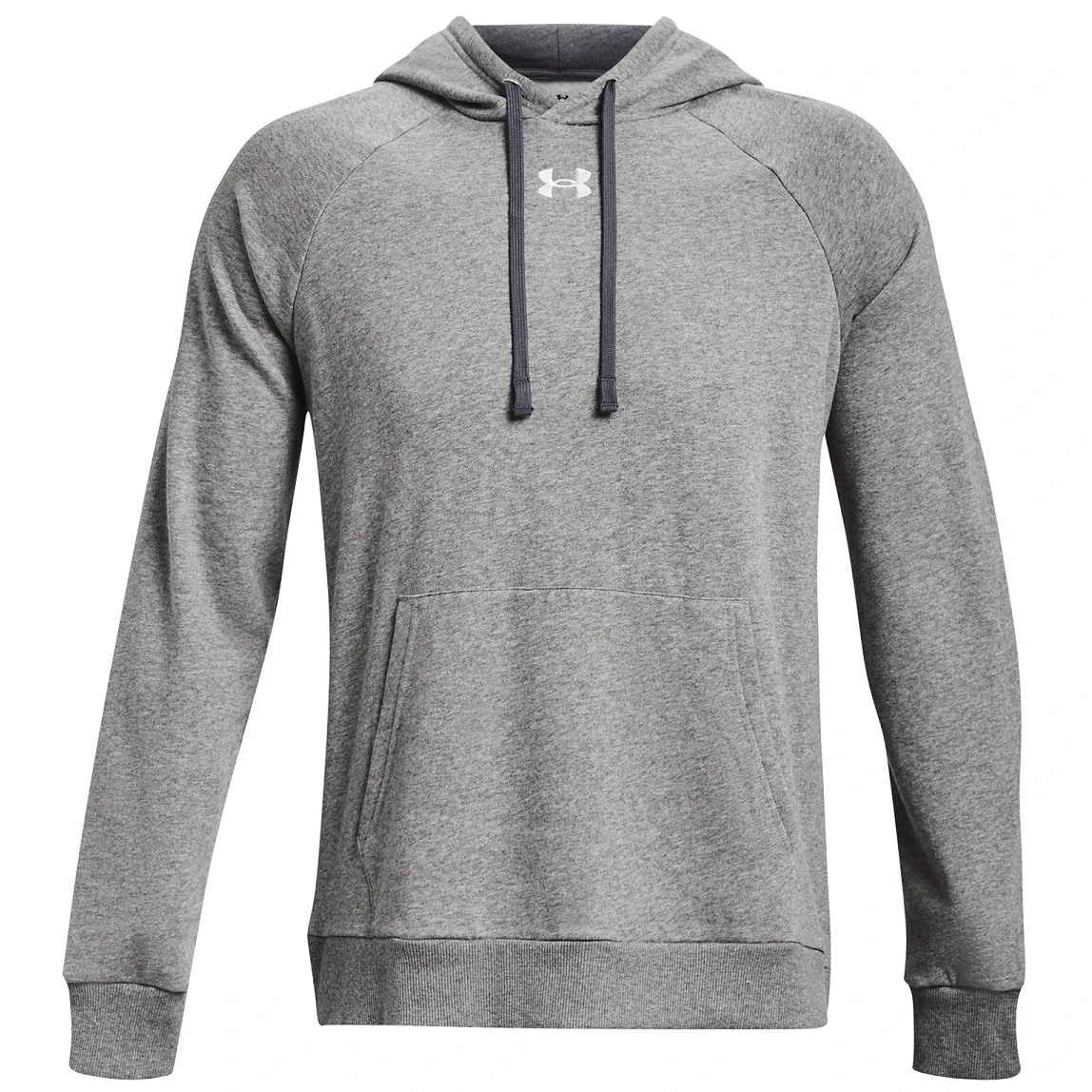 Herren-Sweatshirt Under Armour Rival Fleece Hoodie besteht aus weichem Fleece mit Baumwolle. Dieses Material bietet einen sehr angenehmen Tragekomfort. Das Sweatshirt hat eine Kängurutasche und eine Kapuze mit Kordelzug. Der untere Saum und die Bündchen bestehen aus geripptem, elastischem Material.