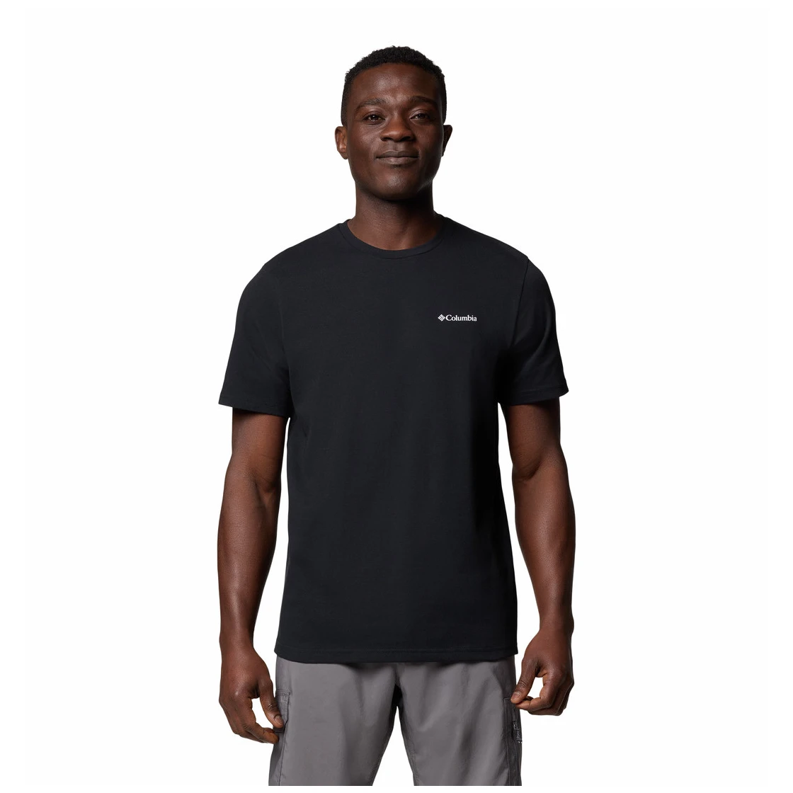 Das Hageman™ Graphic Tee des Herstellers Columbia vereint Stil, Komfort und Funktionalität und ist somit ideal für Ihre Outdoor-Abenteuer. Dank der Omni-Wick™-Technologie leiten Sie Feuchtigkeit effektiv von Ihrem Körper ab und bleiben selbst bei anstrengenden Wanderungen trocken und komfortabel. Das T-Shirt besteht aus 58 % Baumwolle und 42 % recyceltem Polyester, was für ein angenehmes Gefühl auf der Haut sorgt und gleichzeitig umweltfreundlich ist. Eine großartige Wahl für den Alltag und aktive Outdoor-Aktivitäten.