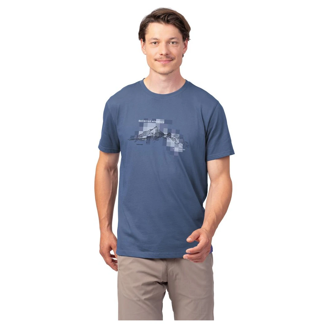 Das Herren T-Shirt Luke der Marke Hannah ist ein bequemes lässiges Kurzarm-T-Shirt, hergestellt aus 100% Bio-Baumwolle. Durch die lockere Schnittführung bietet es höchsten Tragekomfort im Alltag und bei Freizeitaktivitäten. Der Anbau von Bio-Baumwolle erfolgt nach ökologischen Standards. Dies gewährleistet eine schonende Produktion und sorgt zugleich für weiche, strapazierfähige Fasern mit angenehmer Haptik. Das T-Shirt hat einen dezenten Print auf der Brust und das 160 g/m² Material sorgt für Leichtigkeit und Atmungsaktivität.