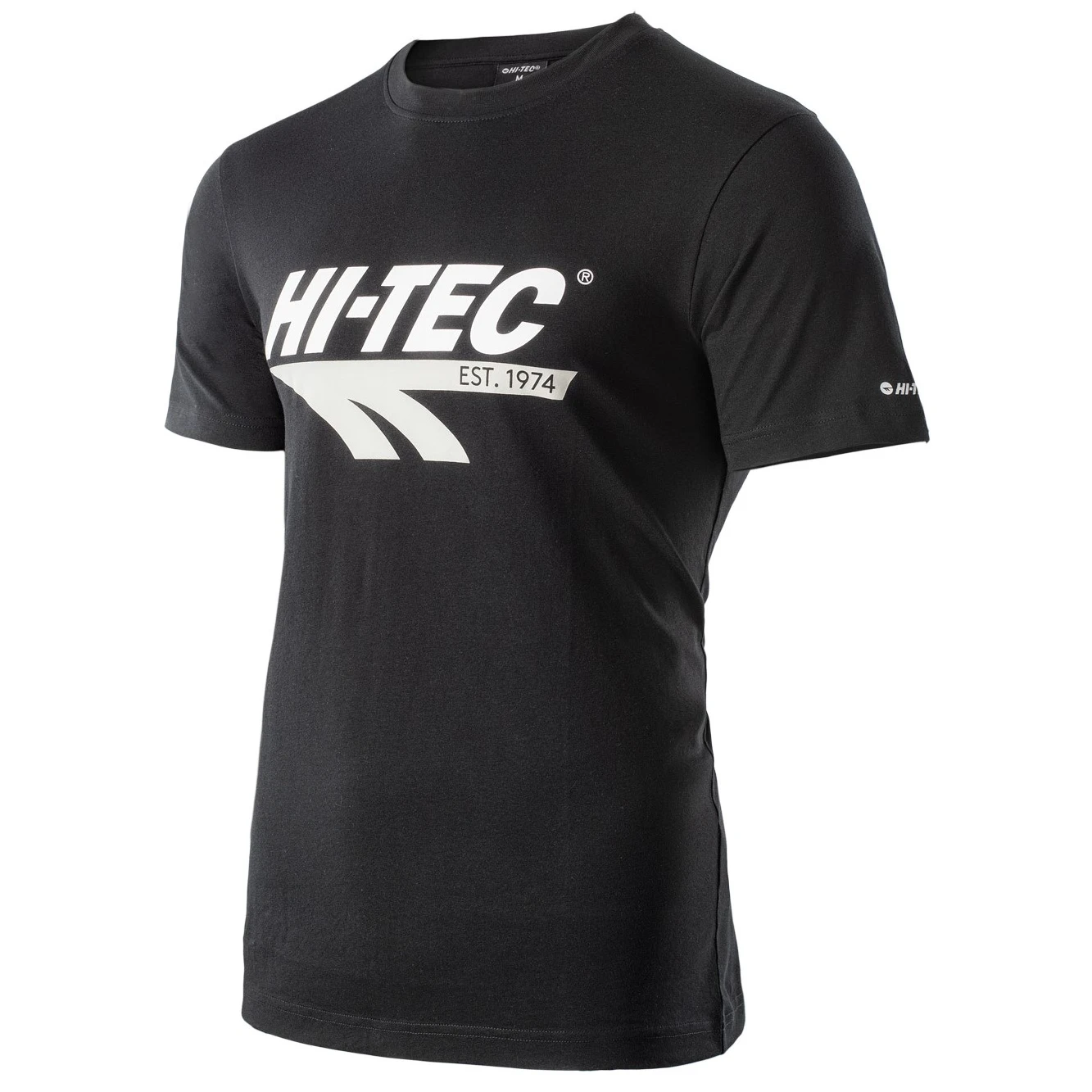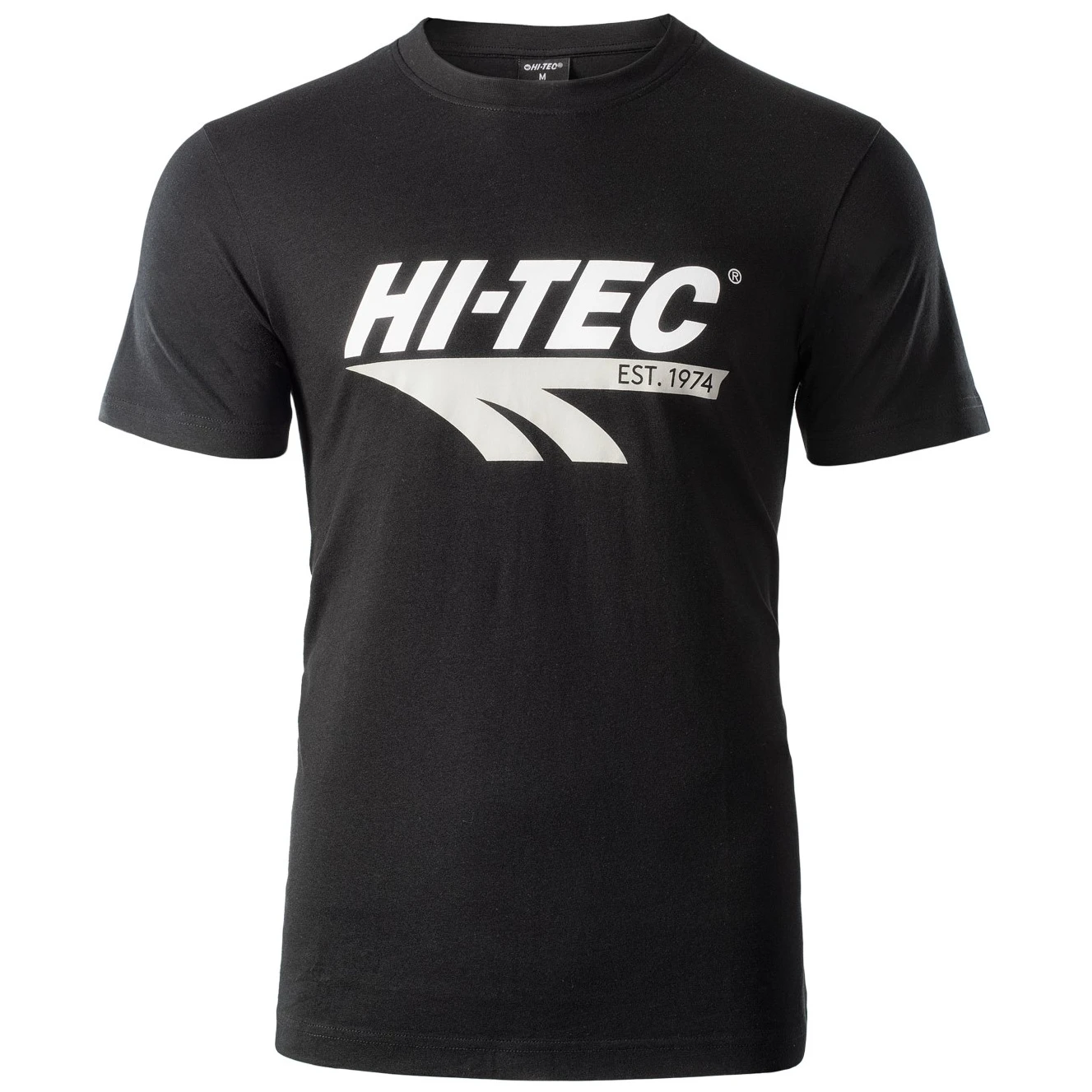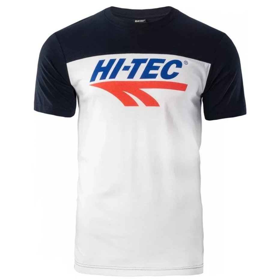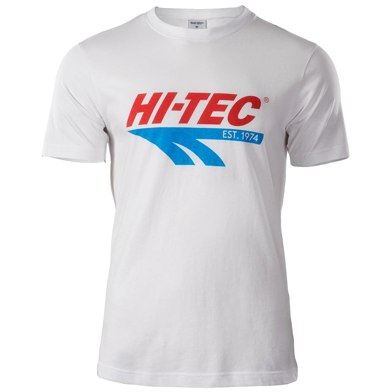 Bequemes Herren T-Shirt Hi-Tec Retro mit kurzen Ärmeln und schönem Aufdruck auf der Vorderseite kann für den Alltag an Sommertagen verwendet werden.