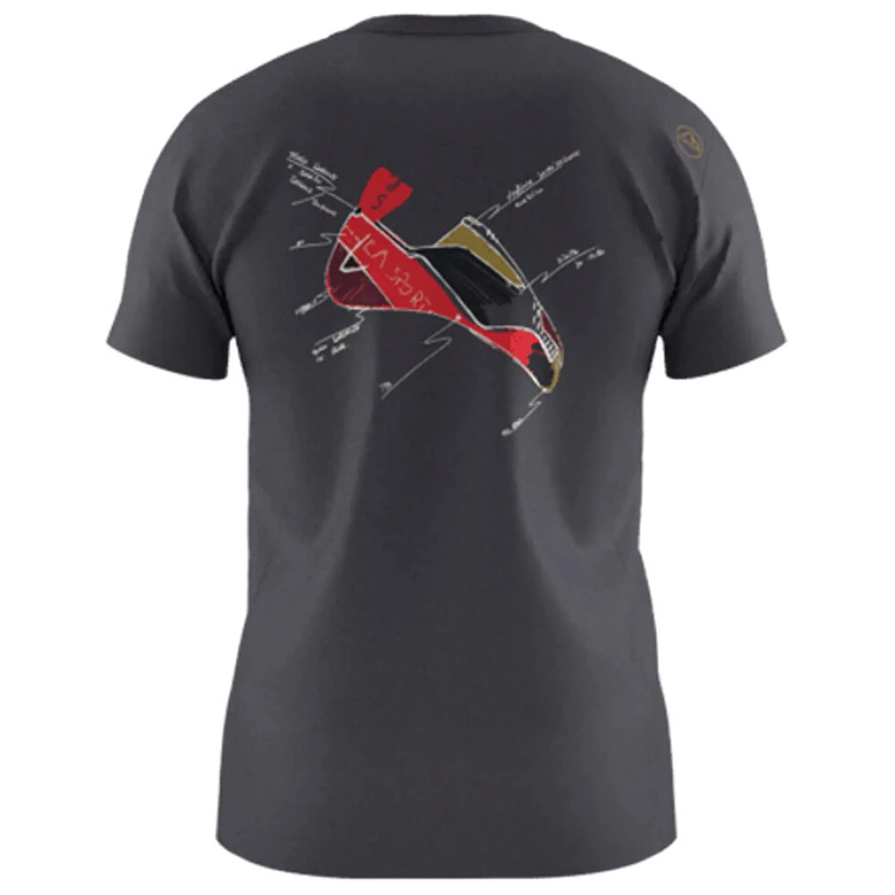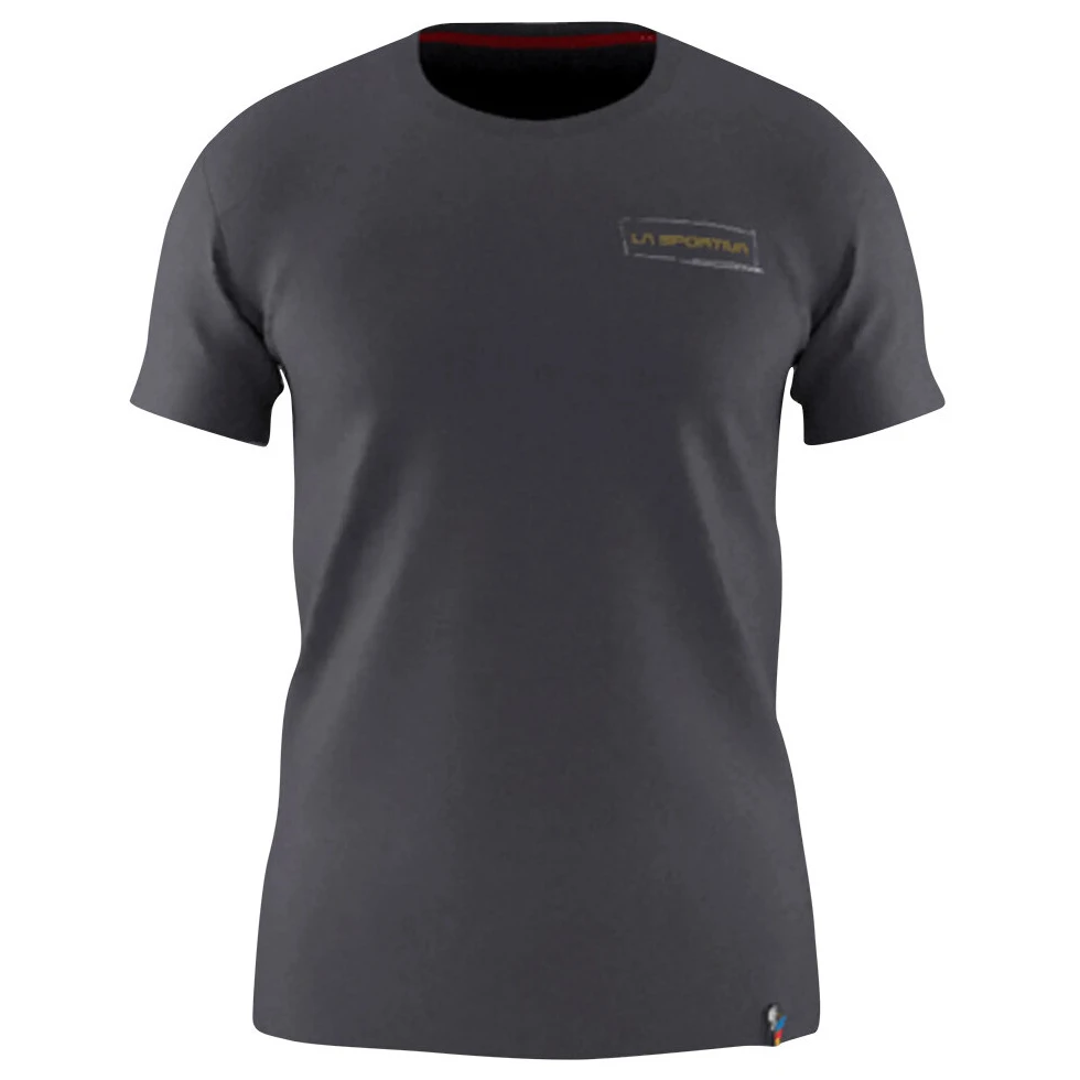 Herren T-Shirt La Sportiva Mantra T-Shirt M mit kurzen Ärmeln besteht aus weicher Bio-Baumwolle, die atmungsaktiv und angenehm auf der Haut ist. Der sportliche Schnitt mit kurzen Ärmeln und rundem Ausschnitt sitzt perfekt. Der T-Shirt-Aufdruck ist vom Kletterer-Mantra inspiriert. Das T-Shirt ist zum Klettern, Bouldern, Wandern, für die Freizeit und den Alltag geeignet.
