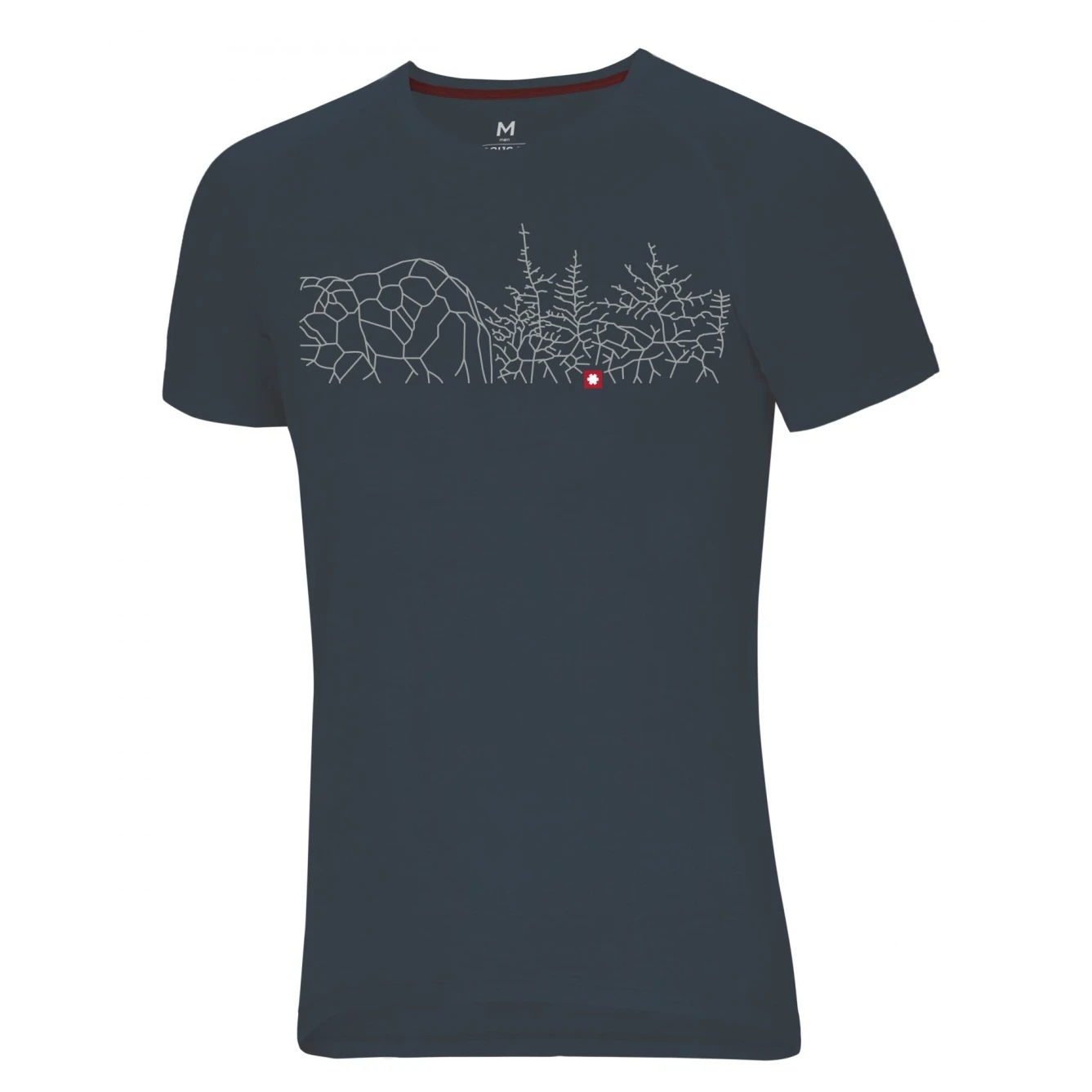 Bequemes Herren T-Shirt aus Baumwolle Ocún Raglan T ist mit einem Bergsteigermotiv verziert. Ideal zum Klettern und für den Alltag.