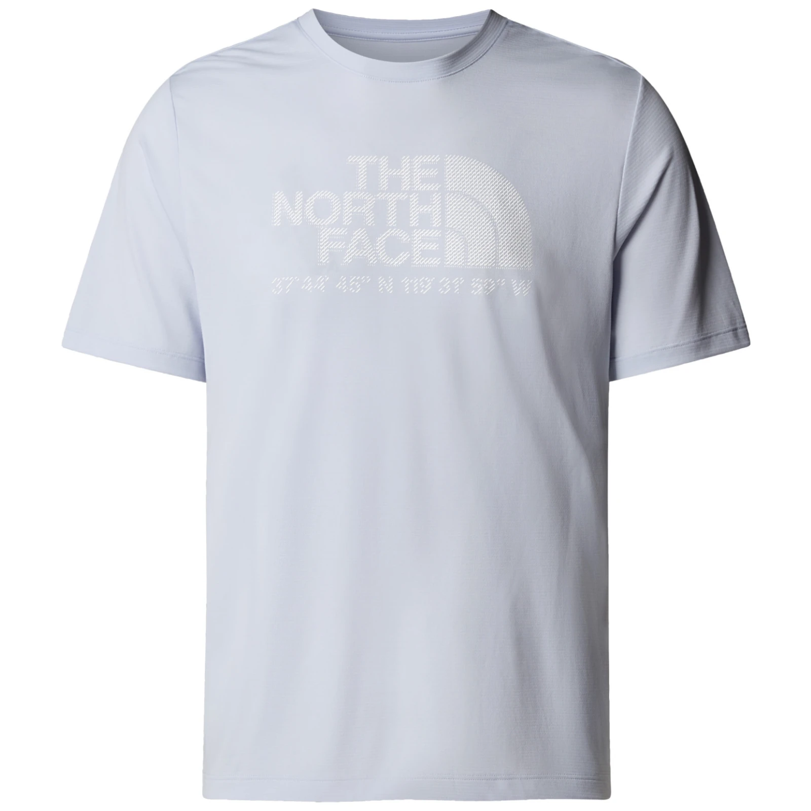 Das 24/7 S/S Tee Logo Graphic Reg Herren-T-Shirt von The North Face vereint Komfort, modernes Design und Funktionalität. Es besteht aus 100 % Polyester und bietet hervorragende Atmungsaktivität und ganztägigen Komfort. Auf der Vorderseite befindet sich eine markante Grafik mit geografischen Koordinaten, die dem T-Shirt einen einzigartigen Look verleiht.