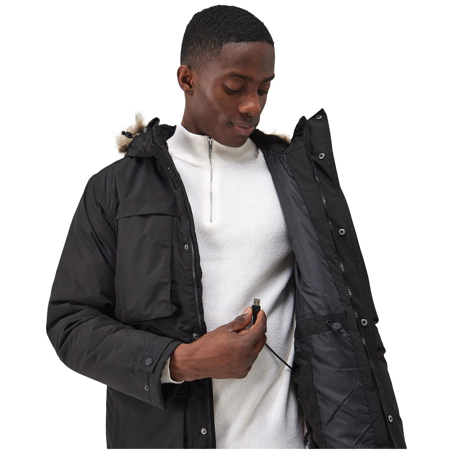 Trendy und wasserdichte beheizbare Herrenjacke Volter Parka Marke Regatta. Diese Parkajacke für Herren verfügt über eine wasserdichte Beschichtung, verschweißte Nähte und eine Isolierung, ist gleichzeitig aber äußerst atmungsaktiv, damit Sie frisch bleiben.
