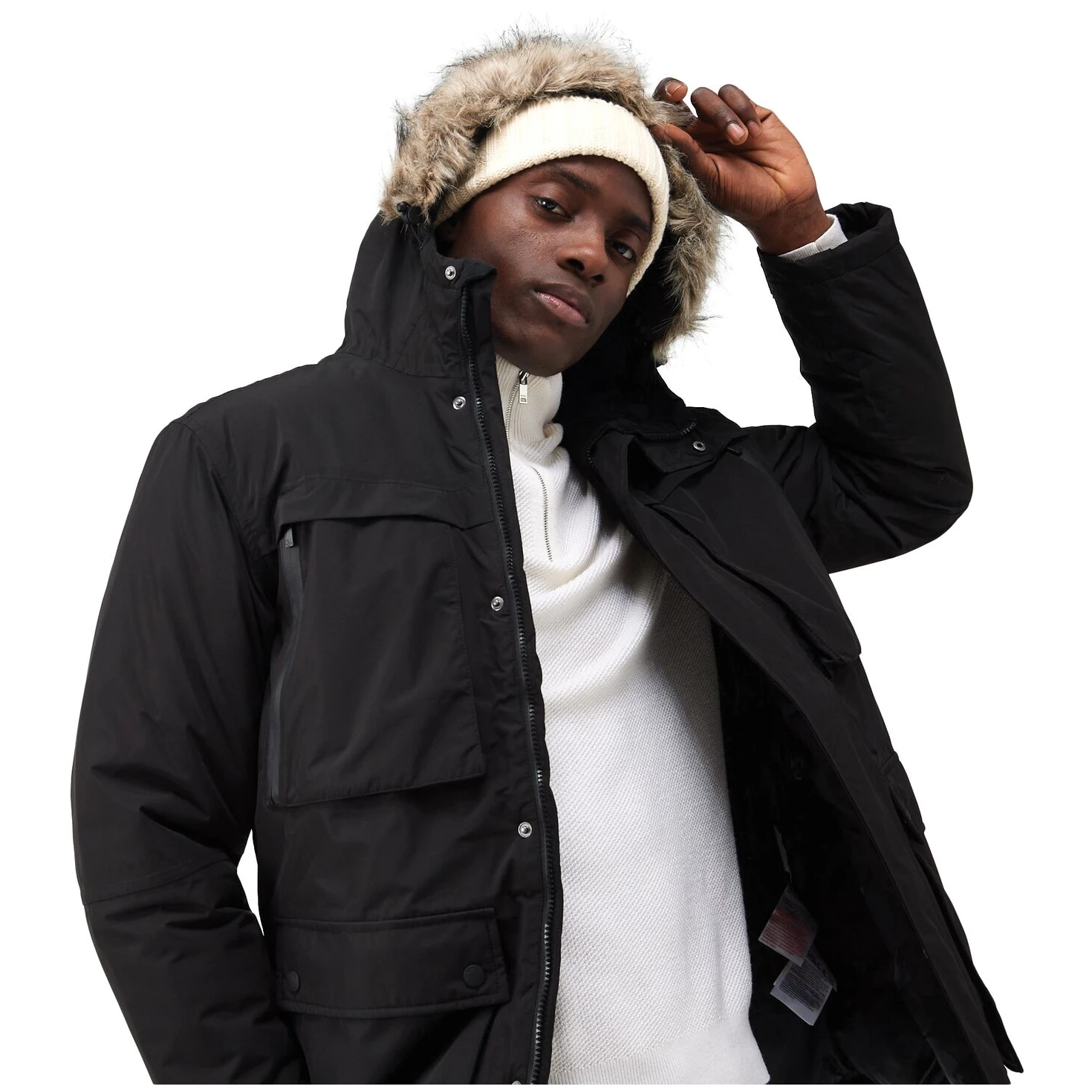 Verstellbare Kapuze mit abnehmbarem Kunstfellbesatz