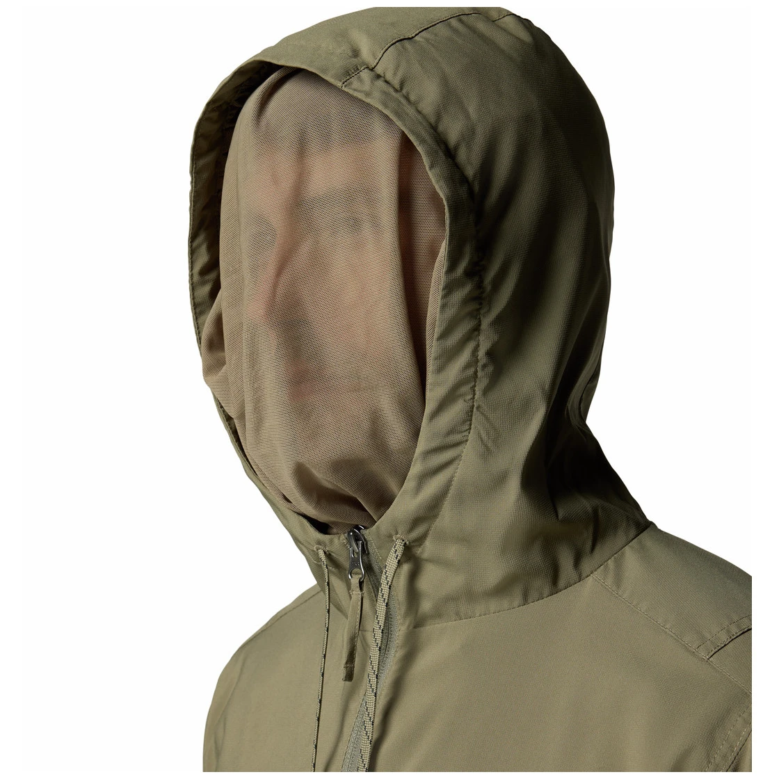 Die Jacke besteht aus 100 % recyceltem Polyester, was Leichtigkeit und Atmungsaktivität gewährleistet. Eine integrierte Gesichtsmaske aus Netzgewebe und eine verstellbare Kapuze sorgen für zusätzlichen Schutz. Belüftungseinsätze auf der Rückseite verbessern die Luftzirkulation, der verstellbare Saum, die elastischen Bündchen und die Eingrifftaschen sorgen für maximalen Tragekomfort. Darüber hinaus verfügt die Jacke über die Insekten abwehrende Insect Shield Technologie, die du besonders in der Natur zu schätzen wissen wirst.