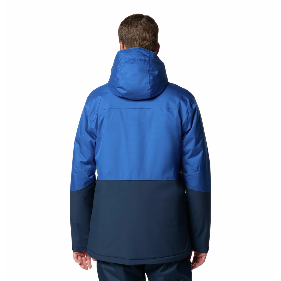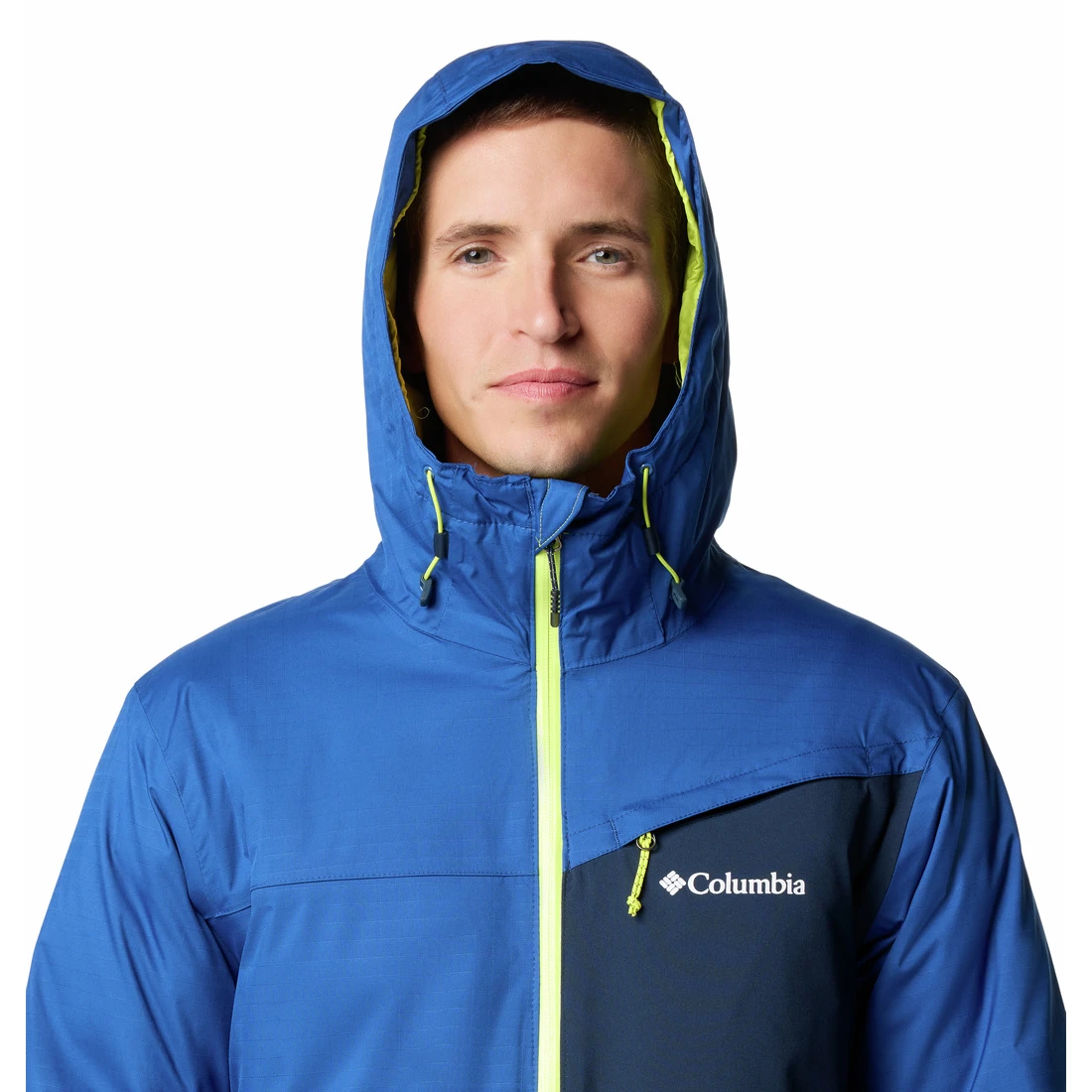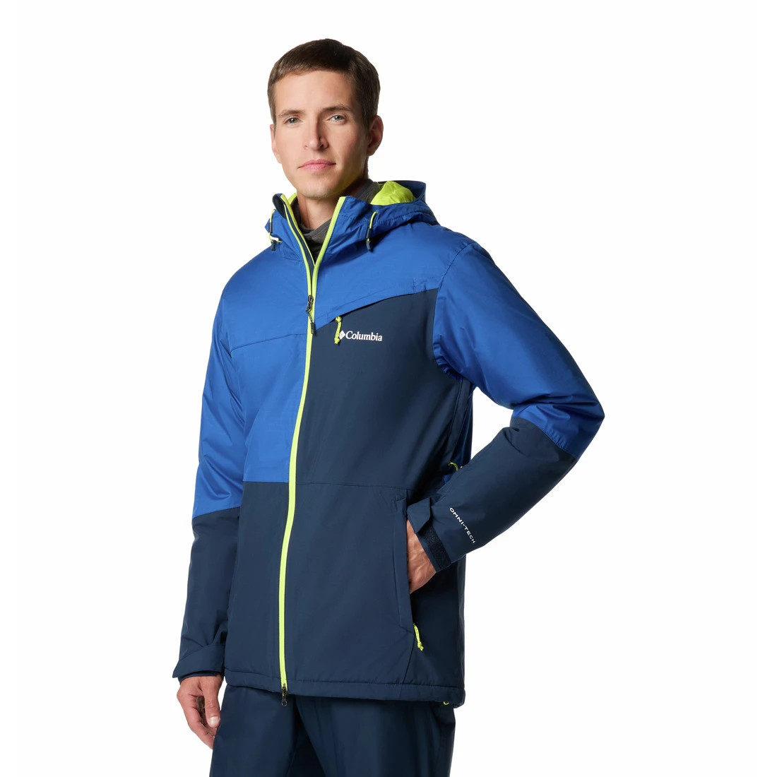 Zu den Grundausstattungen beim Skifahren gehören eine Unterarmbelüftung zur Temperaturregulierung, ein Kinnschutz, eine Skipasstasche und ein Schneefang mit verstellbaren Details, der das Eindringen von Schnee verhindert. Die Jacke verfügt außerdem über einen mit Polyurethan beschichteten Frontreißverschluss für erhöhte Wasserfestigkeit, verstellbare Bündchen und einen verstellbaren Saum mit Kordelzug. Stauraum bieten Reißverschlusstaschen, eine interne Sicherheitstasche und eine Brusttasche zur Aufbewahrung wichtiger Dinge.