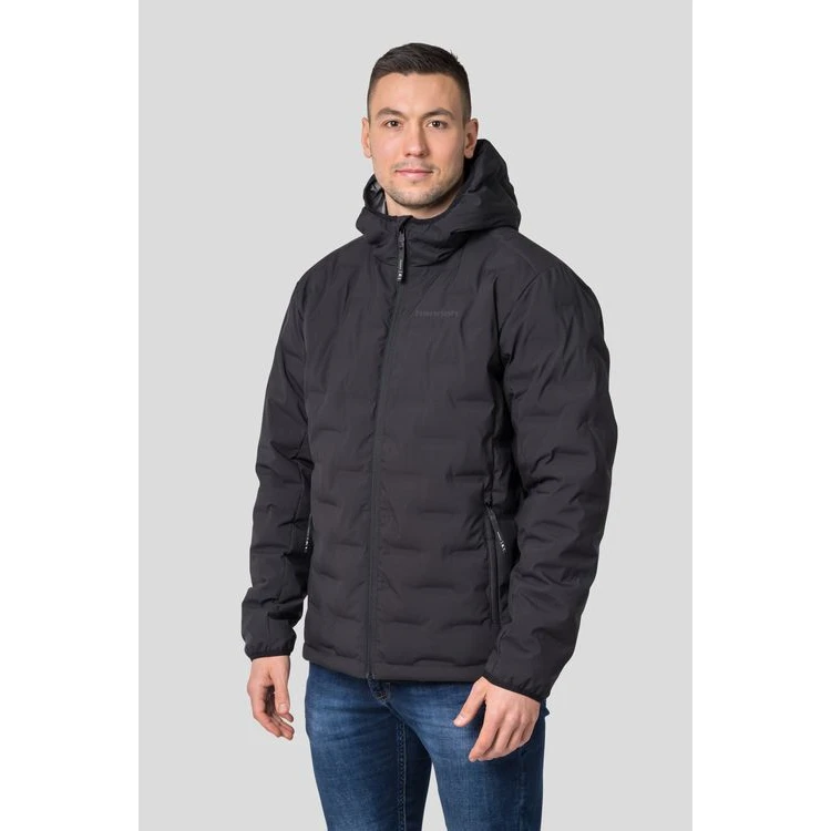 Die Federn verfügen über ein Herkunftszertifikat RDS, das den Hersteller verpflichtet, Federn aus Farmen unter würdigen Bedingungen zu verarbeiten. Der Umfang des Jackensaums lässt sich durch einen Kordelzug regulieren. Die Ärmel und die Kapuze sind mit elastischen Besätzen versehen. Die Jacke hat 2 Außentaschen und 1 Innentasche mit Reißverschluss.