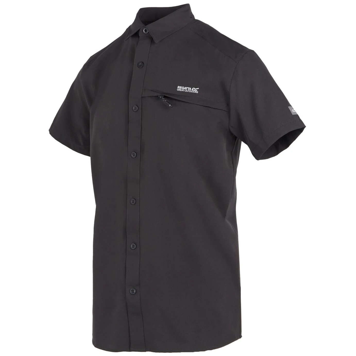 Das atmungsaktive, leichte und stylische Herren Kurzarmhemd Travel Packaway von Regatta sorgt für Eleganz auf Reisen. Dank des Isoflex-Stretchgewebes passt sich das Kurzarmshirt Ihren Bewegungen an. Das leichte Shirt ist mit einer wasserabweisenden Ausrüstung ausgestattet. Es kann in eine Tasche gepackt werden. Perfekt für unterwegs.