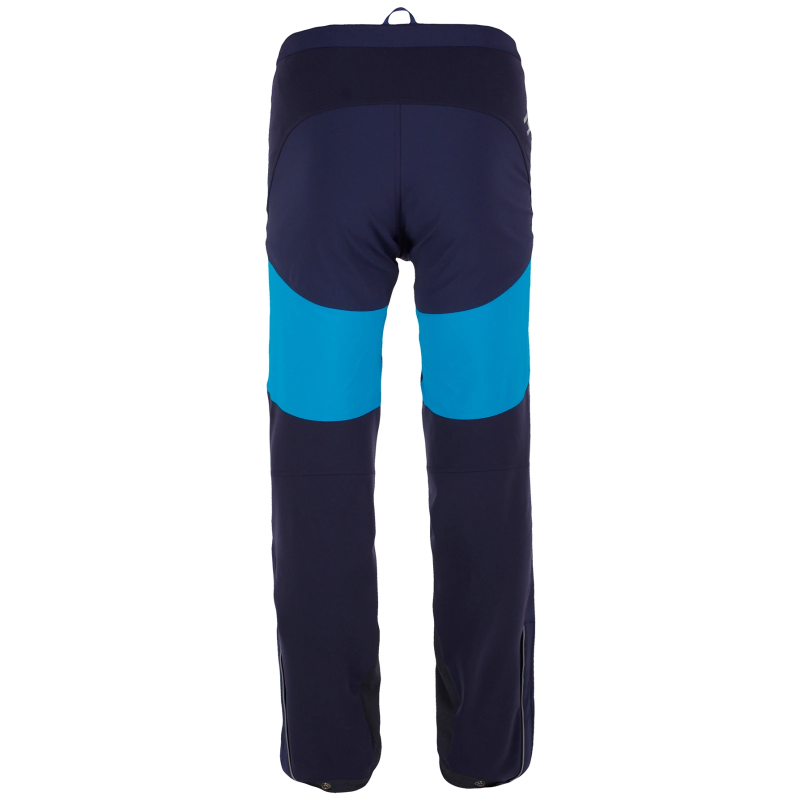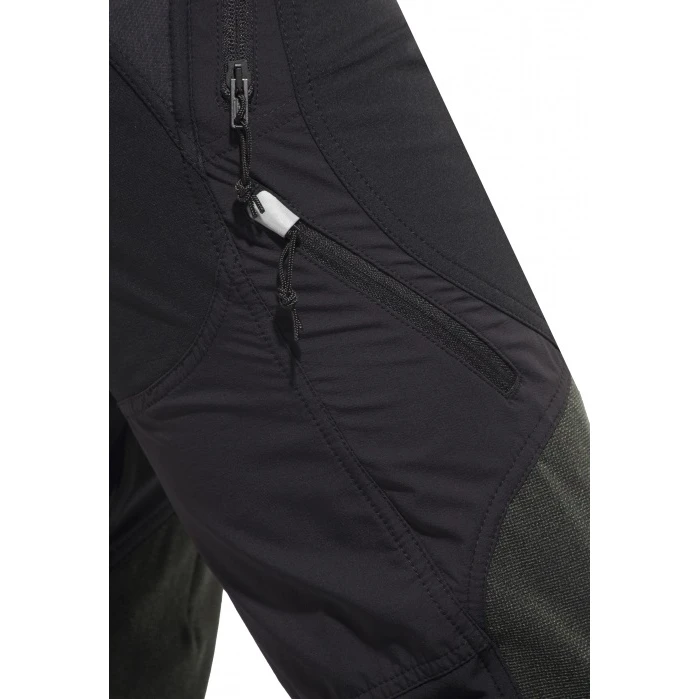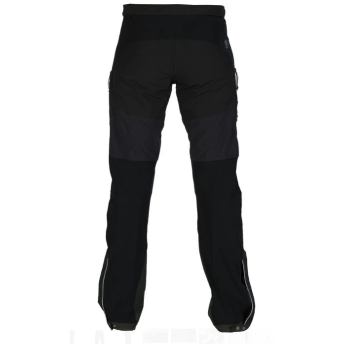 Die Hose verfügt dann über zwei Fronttaschen, eine Seitentasche, die auch mit Sitzgurt sehr gut zugänglich ist, und eine Klappe mit zwei gegenüberliegenden Schiebern. Auch der Hosensaum lässt sich verstellen. Die Hose verfügt außerdem über einen seitlich abgedeckten Reißverschluss und einen elastischen Zwickel, der ein bequemes Überziehen über die Skischuhe ermöglicht. Die Beinunterkante kann zusätzlich mit einem Haken am Schuh befestigt werden. Die Hose wird von professionellen Bergführern, Mitgliedern der UIAGM + Mountain Rescue Association, verwendet. Ökologisch verantwortungsvolle Produktion – NATURFREUNDLICH.