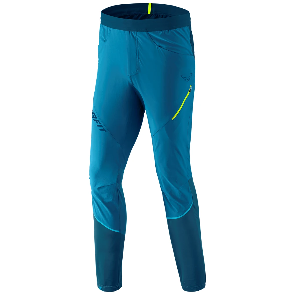 Herrenhosen Transalper Hybrid M Pnt von Dynafit sind leichte, vielseitige Hosen aus einem Mix hochwertiger Materialien. Sie verfügen über eine wind- und wasserabweisende Beschichtung und eignen sich daher auch für längere Touren in die Berge bei wechselhaftem Wetter. Dank Dynastretch-Gewebe bieten sie hervorragende Atmungsaktivität, Belüftung und Komfort. Die Hose hat eine kleine Reißverschlusstasche am linken Bein und zwei Taschen vorne. Reflektierende Elemente bieten Schutz bei schlechten Sichtverhältnissen.