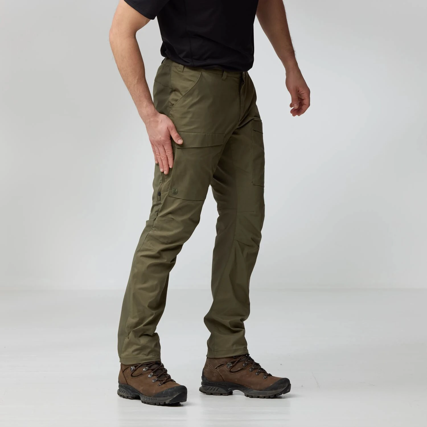 Die Hose verfügt über praktische Taschen zur Aufbewahrung wichtiger Dinge. Offene Fronttaschen eignen sich ideal für den schnellen Zugriff auf kleine Gegenstände, während zwei geknöpfte Beintaschen, eine davon mit Reißverschluss, einen sicheren Platz für Wertsachen oder Karten bieten. Dank der Kombination aus strapazierfähigen Materialien und durchdachtem Design ist die Abisko Hybrid Trail Trousers M eine großartige Wahl für Trekkingbegeisterte, die eine zuverlässige und bequeme Hose für ihre Outdoor-Abenteuer suchen.