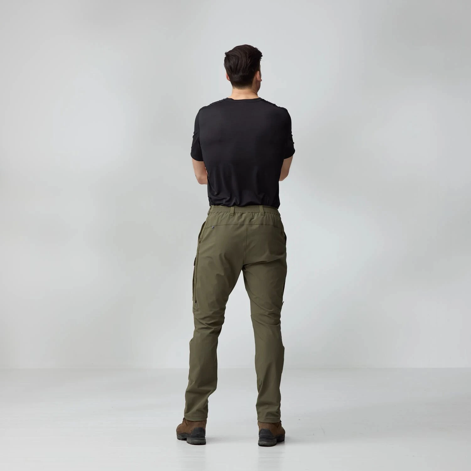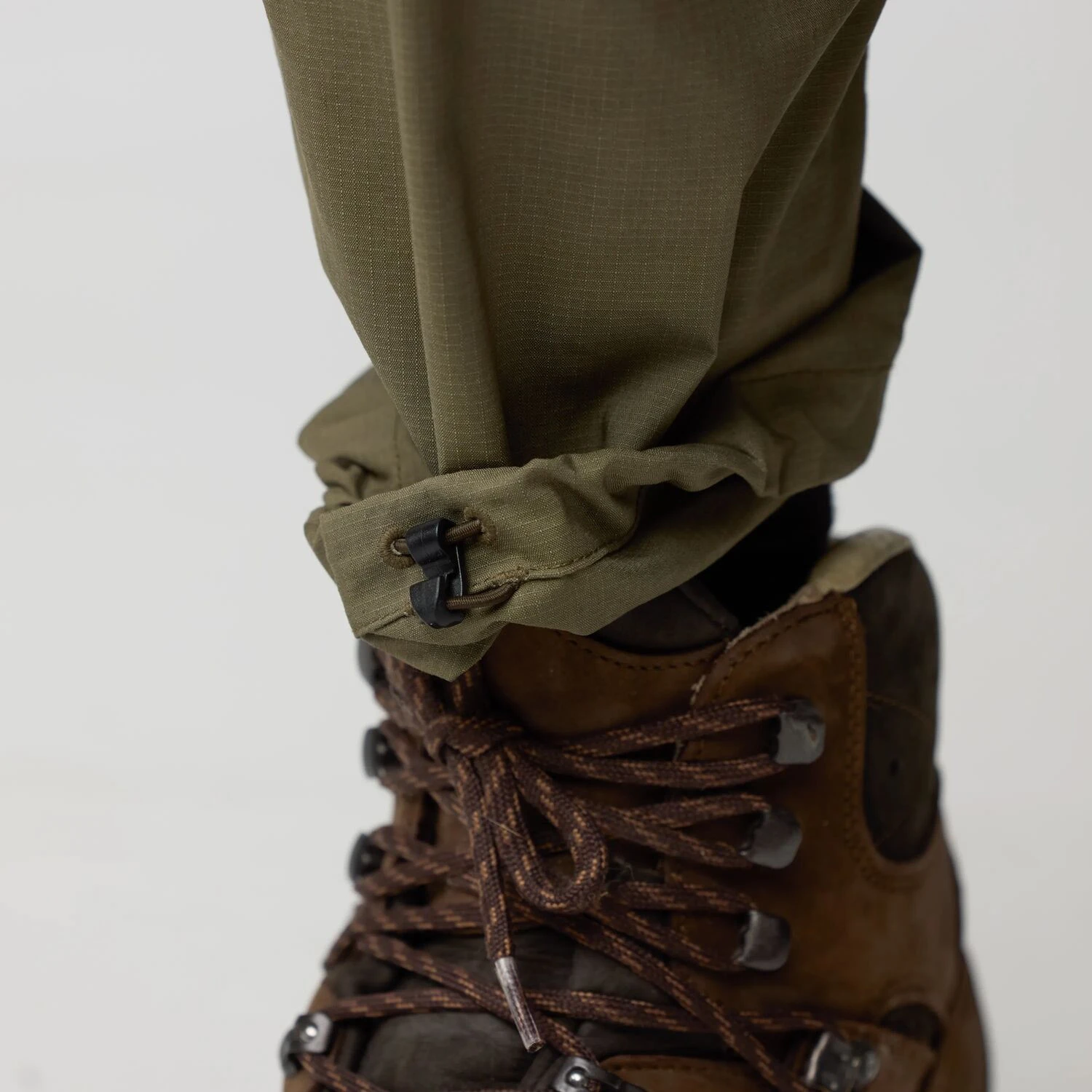 Beim Design der leichten Hose lag der Schwerpunkt auf Funktionalität und Komfort. Die Vorderseite besteht aus strapazierfähigem G-1000 Lite Stretch-Gewebe, das Schutz vor Wind und Abrieb bietet, während die Rückseite aus recyceltem Polyamid und Elasthan für hervorragende Belüftung und Flexibilitätbesteht. Der hoch geschnittene, elastische Hosenbund und die verstellbaren Beinenden ermöglichen eine individuelle Passform und hohen Tragekomfort beim ganztägigen Tragen. Strategisch platzierte Belüftungslöcher an den Seiten mit Netzfutter fördern die Luftzirkulation, was Sie besonders bei intensiven Aktivitäten zu schätzen wissen werden.