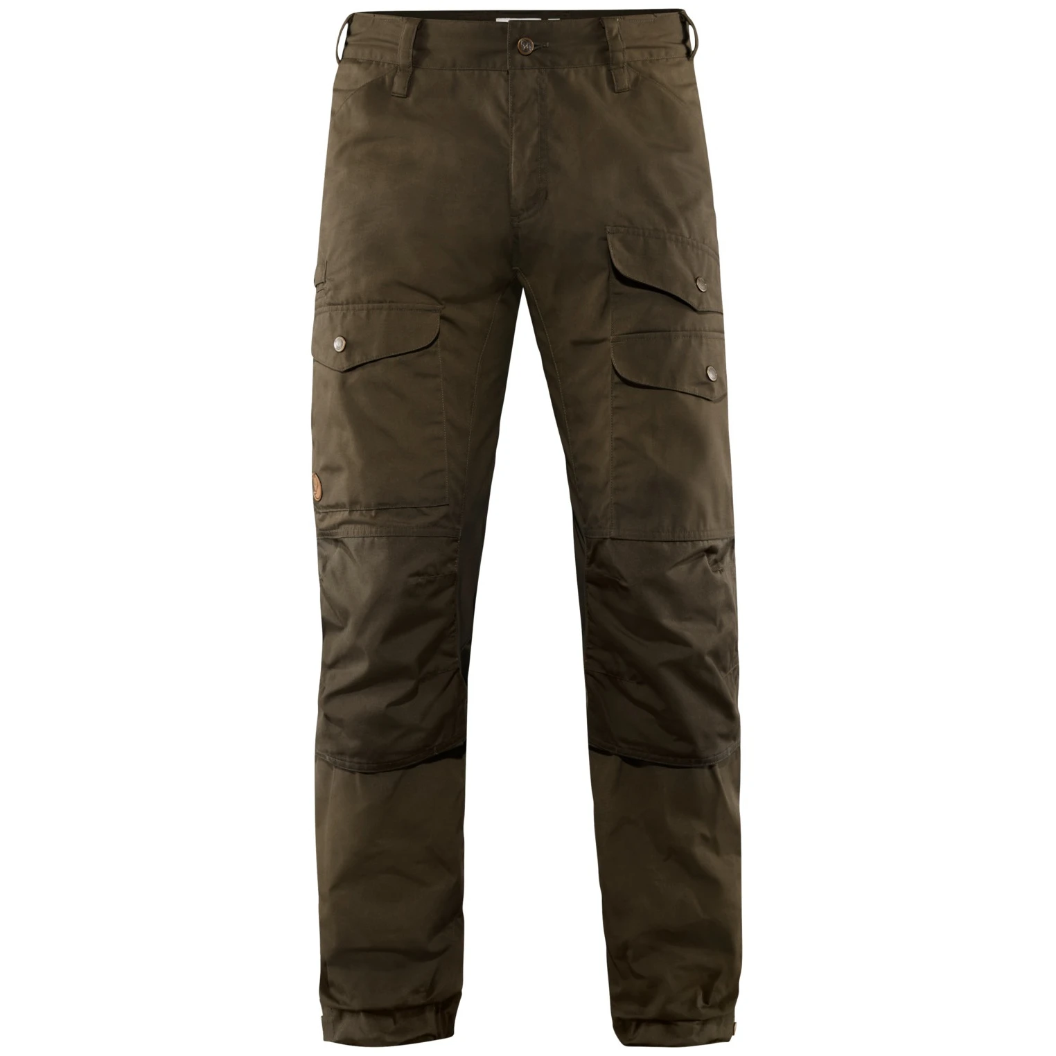 Die strapazierfähige Vidda Pro Ventilated Trs M Trekkinghose der Marke Fjällräven ist für widrige Wetterbedingungen das ganze Jahr über konzipiert. Die Hose besteht aus wind- und wasserdichtem G- 1000 Eco. Die Belüftung und der Schnitt, der für viel Bewegungsfreiheit sorgt, werden Sie begeistern. Die Hose ist außerdem mit vielen praktischen Taschen und Features ausgestattet, wie etwa einer Messertasche am rechten Bein oder einer Eispickelschlaufe am Bund. Verstellbare Träger mit Knöpfen an den Beinenden können abgenommen werden